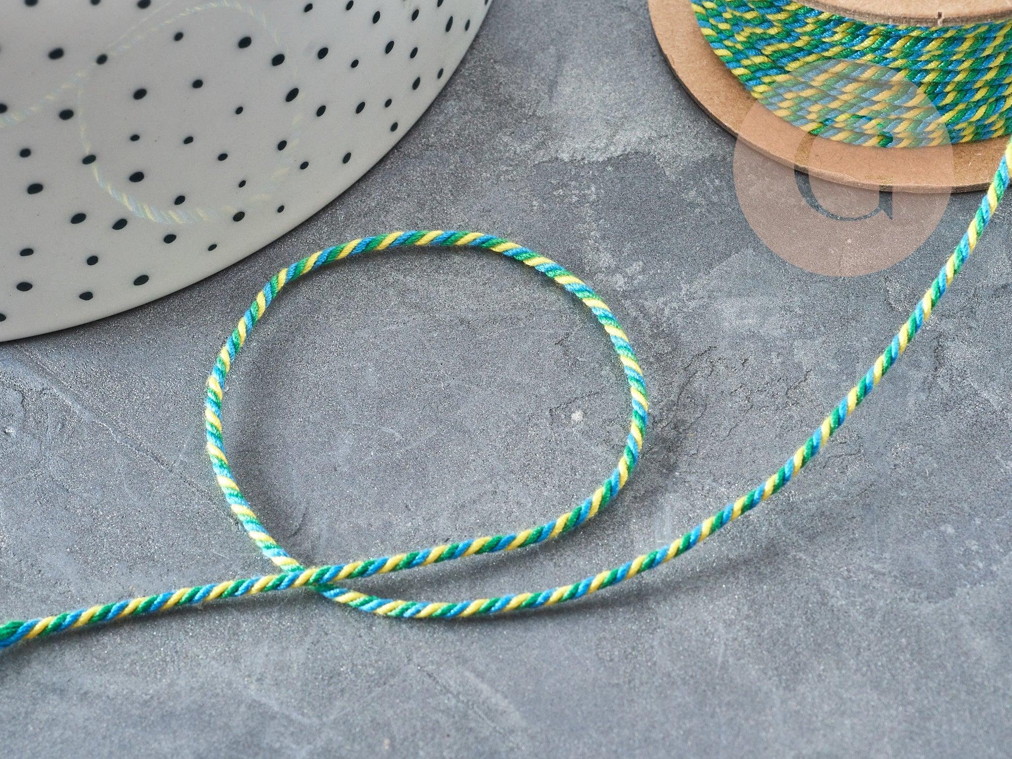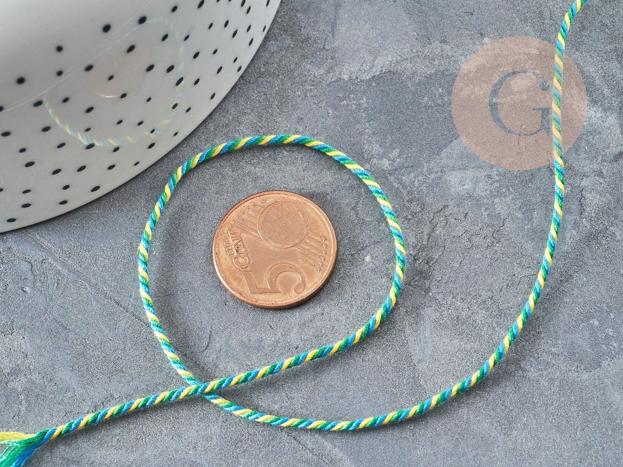Enhance your creations with our 1.2mm yellow, blue and green braided cord. Perfect for a variety of creative projects, this cotton cord, sold in 1 meter length, is an ideal choice for jewelry, scrapbooking, and decoration.