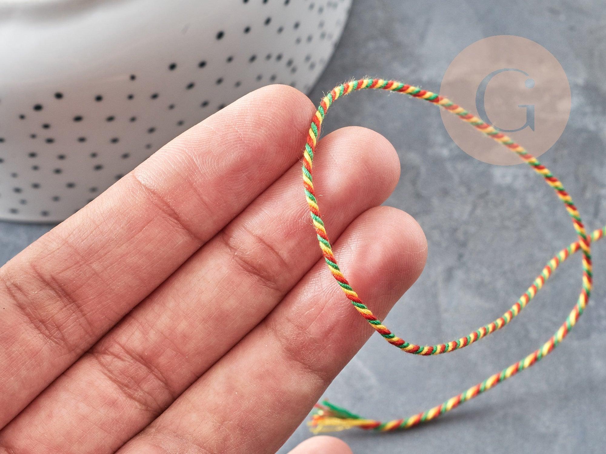 Enhance your creations with our 1.2mm yellow, red and green braided cord. Perfect for a variety of creative projects, this cotton cord, sold in 1 meter length, is an ideal choice for jewelry, scrapbooking, and decoration.
