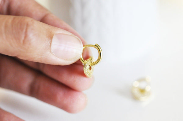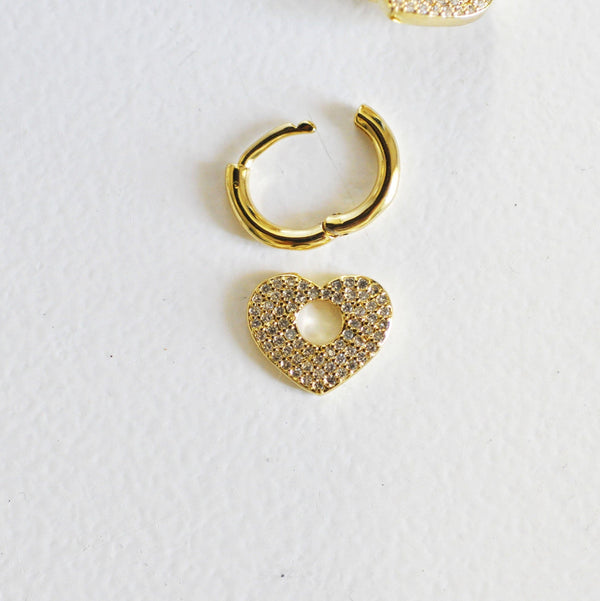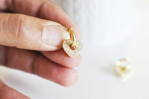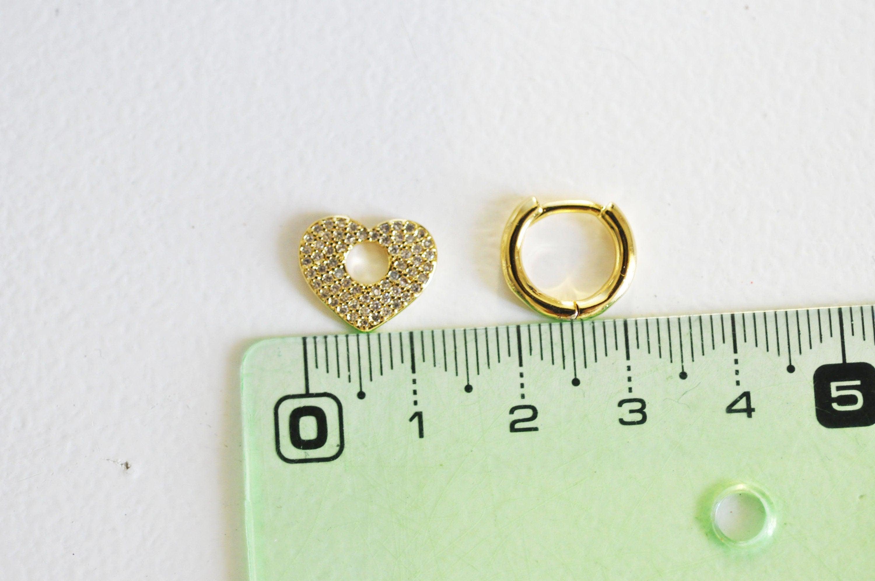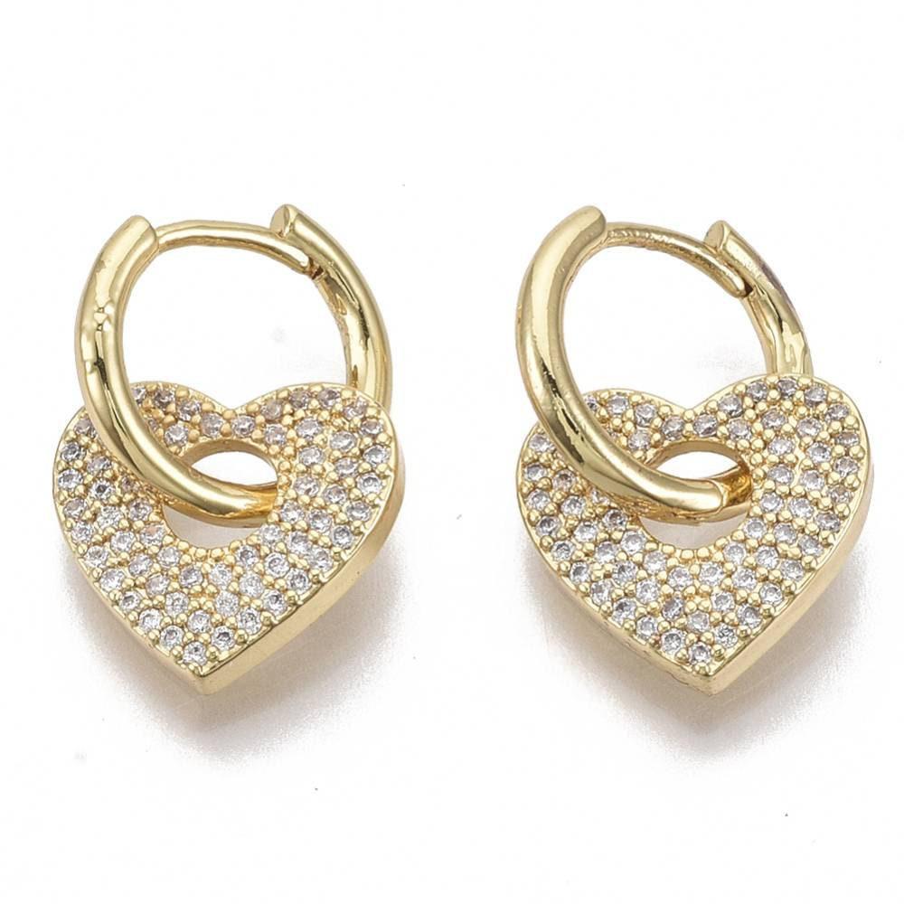 EP-16k gold-plated brass hoop earrings with crystal zircon heart, gold-plated jewelry, pierced ear, pair of crystal earrings, 20mm, G3093