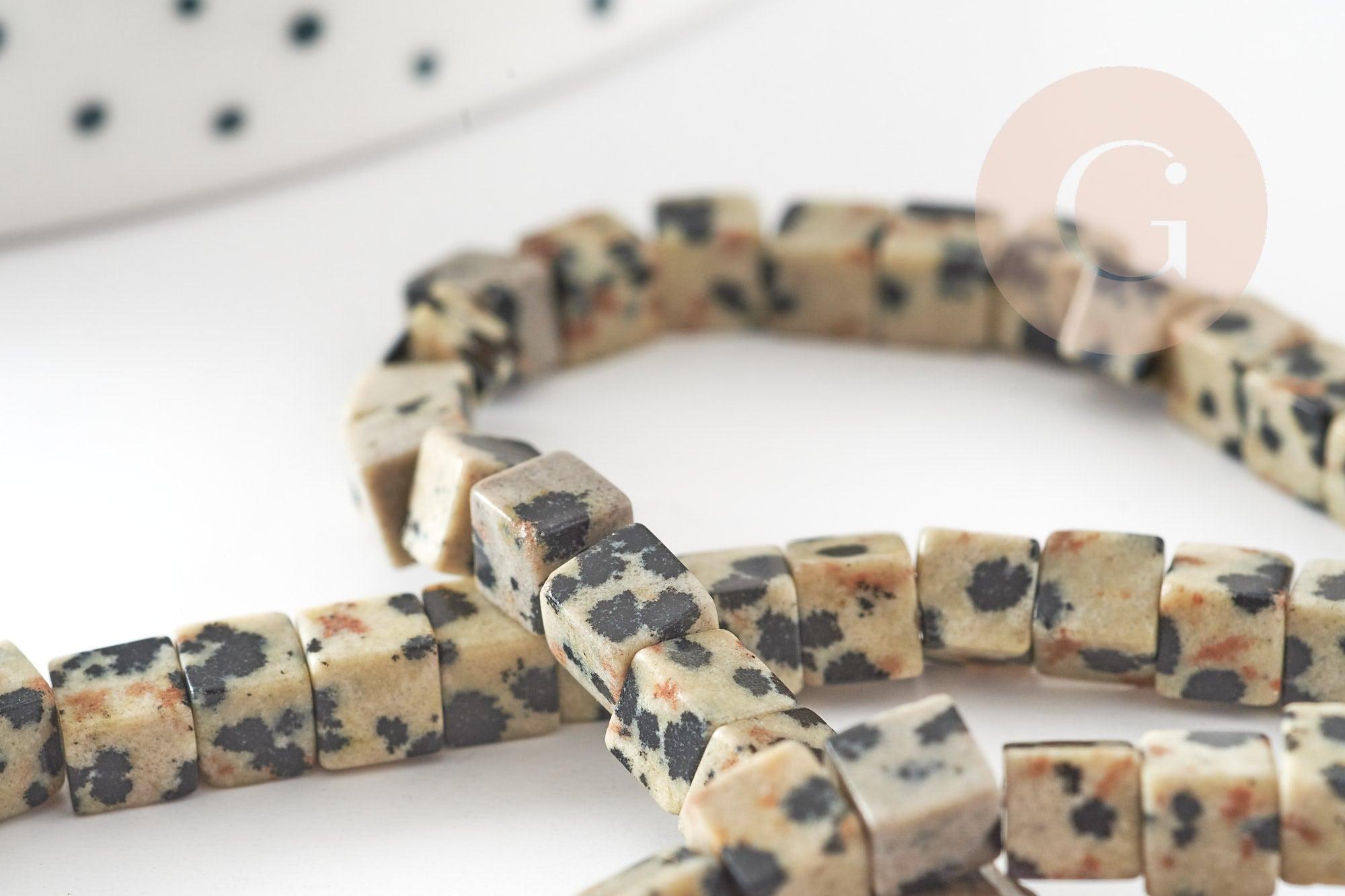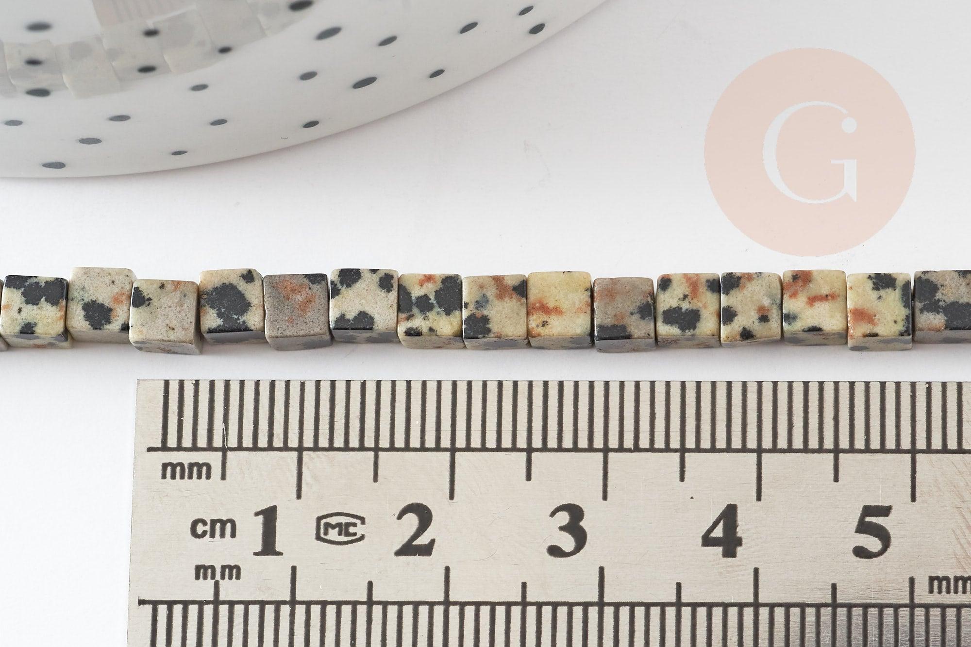 Perle jaspe dalmatien, perle carrée jaspe tacheté,pierre naturelle,perles jaspe pierre, fil de 94 perles, 4mm, x1 (G1650)