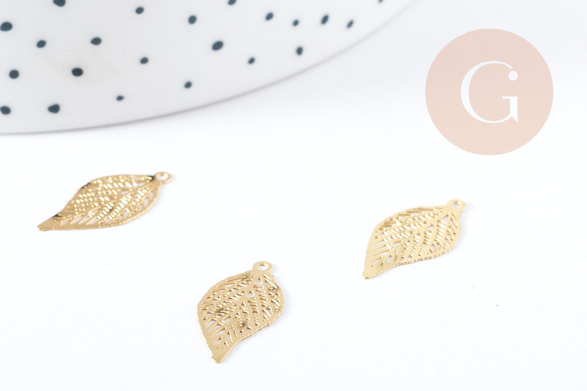 Adopt this gold-plated 201 stainless steel filigree leaf pendant , a lightweight supply for creating numerous DIY costume jewelry pieces.