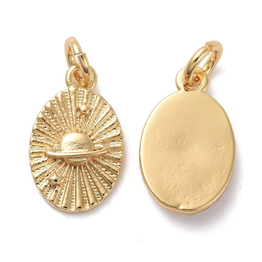 To make magnificent necklaces & earrings, go for this mini oval pendant representing a planet in golden brass.