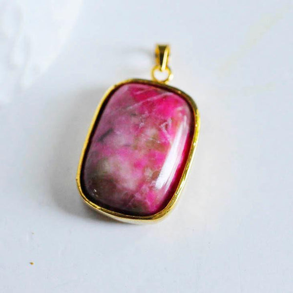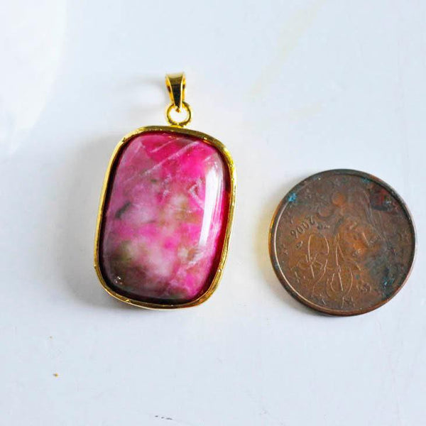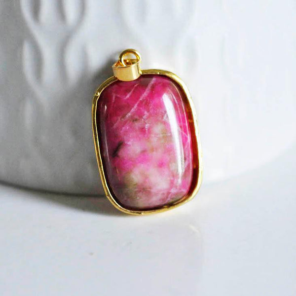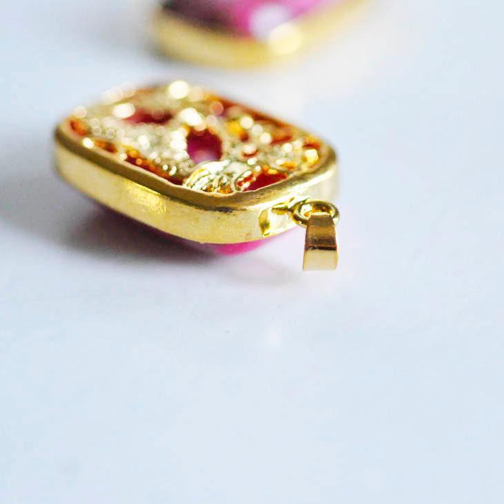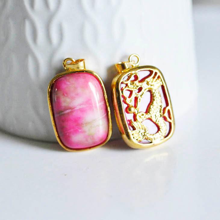Golden rose jade dragon pendant, creative supplies, stone pendant, golden support, jewelry creation, natural stone, 30mm Fall for this pink-tinted jade pendant with its golden support. The back of the pendant in golden filigree represents a dragon. You can create...