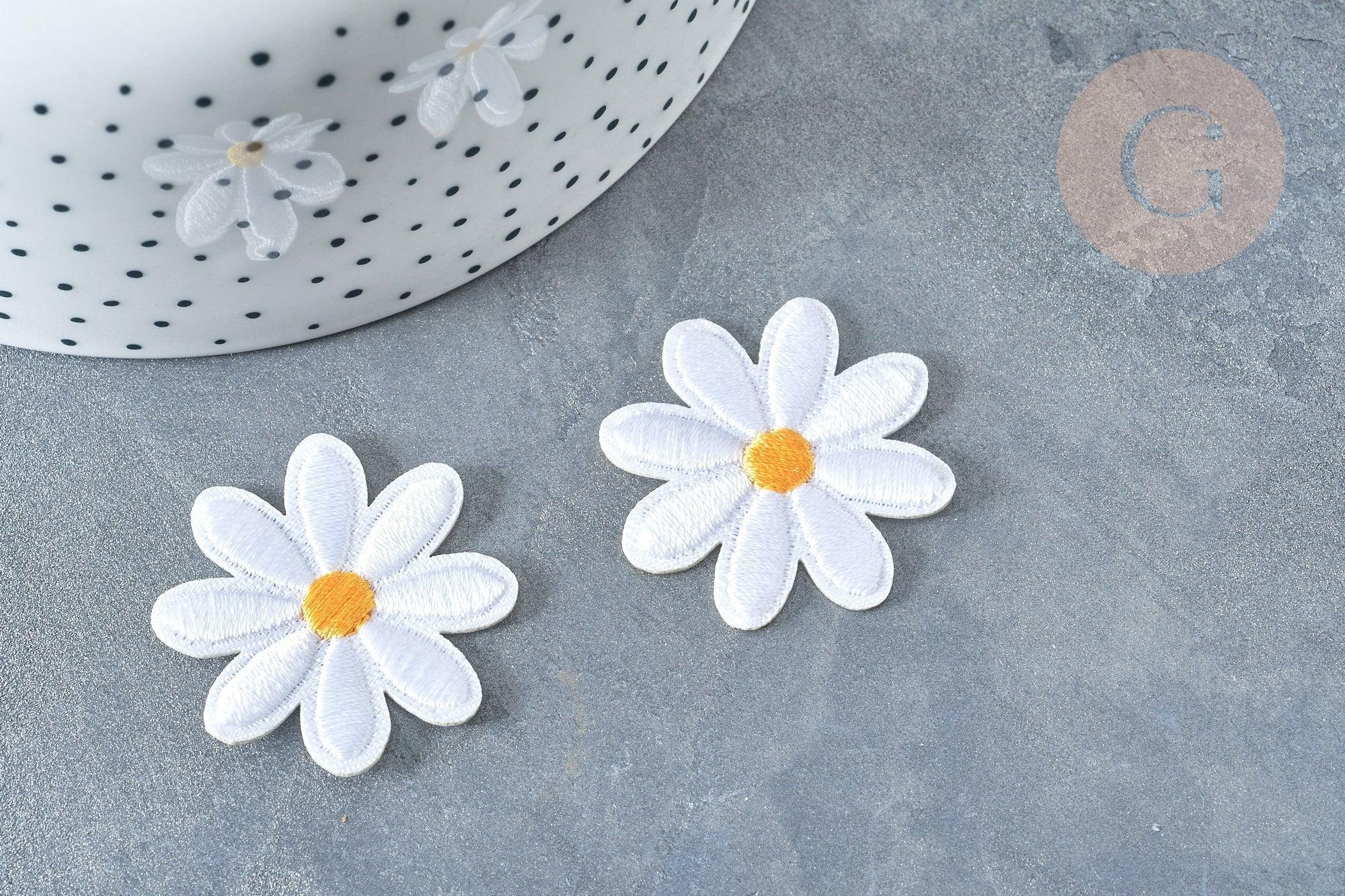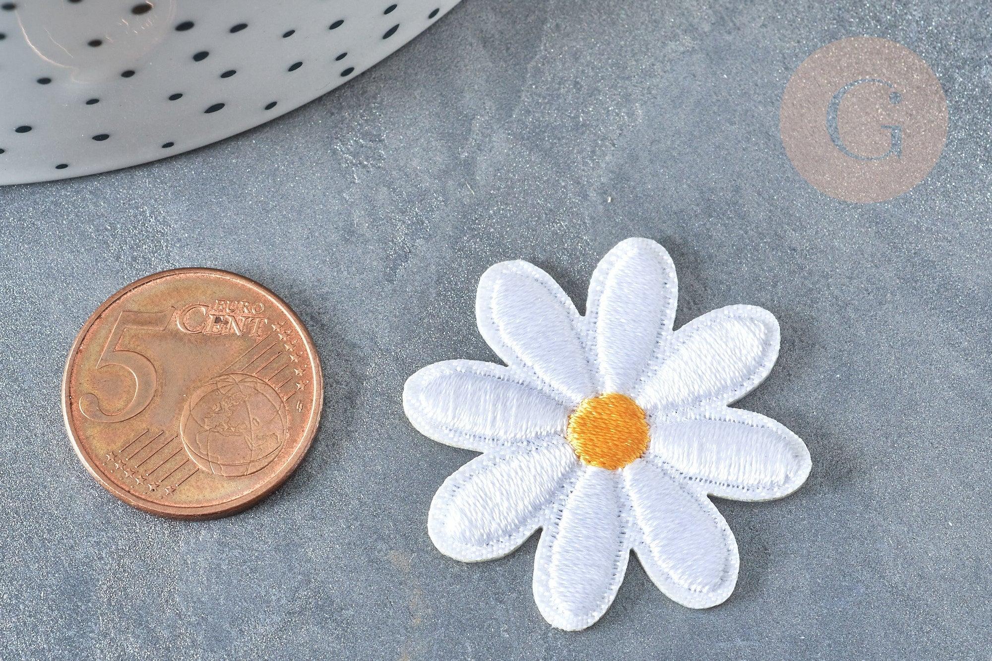 Ecusson brodé Marguerite blanche thermocollant 33mm, x2 (G7787)