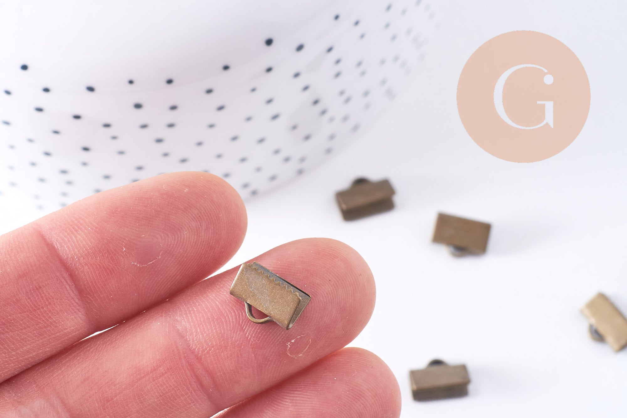 Perfect for neatly finishing your ribbons and cords, these bronze brass pinch terminals add a vintage and elegant touch to your DIY creations. The prongs located on one side allow for a secure hold of your ribbon.