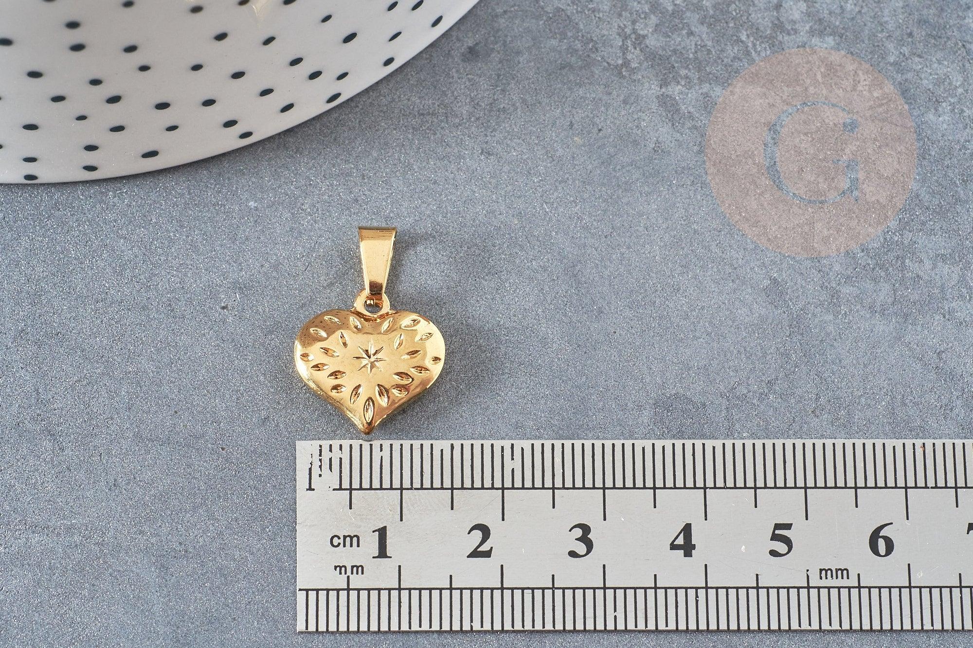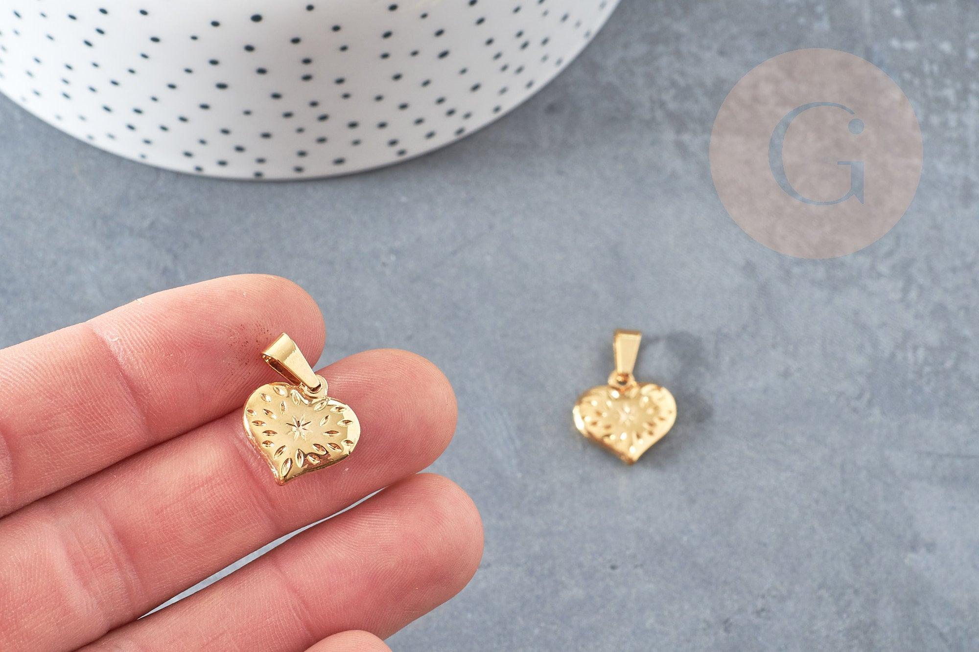 A heart pendant in gold-plated stainless steel decorated with a Japanese wave pattern. To combine poetry and romance with your DIY jewelry, fall for this pendant.