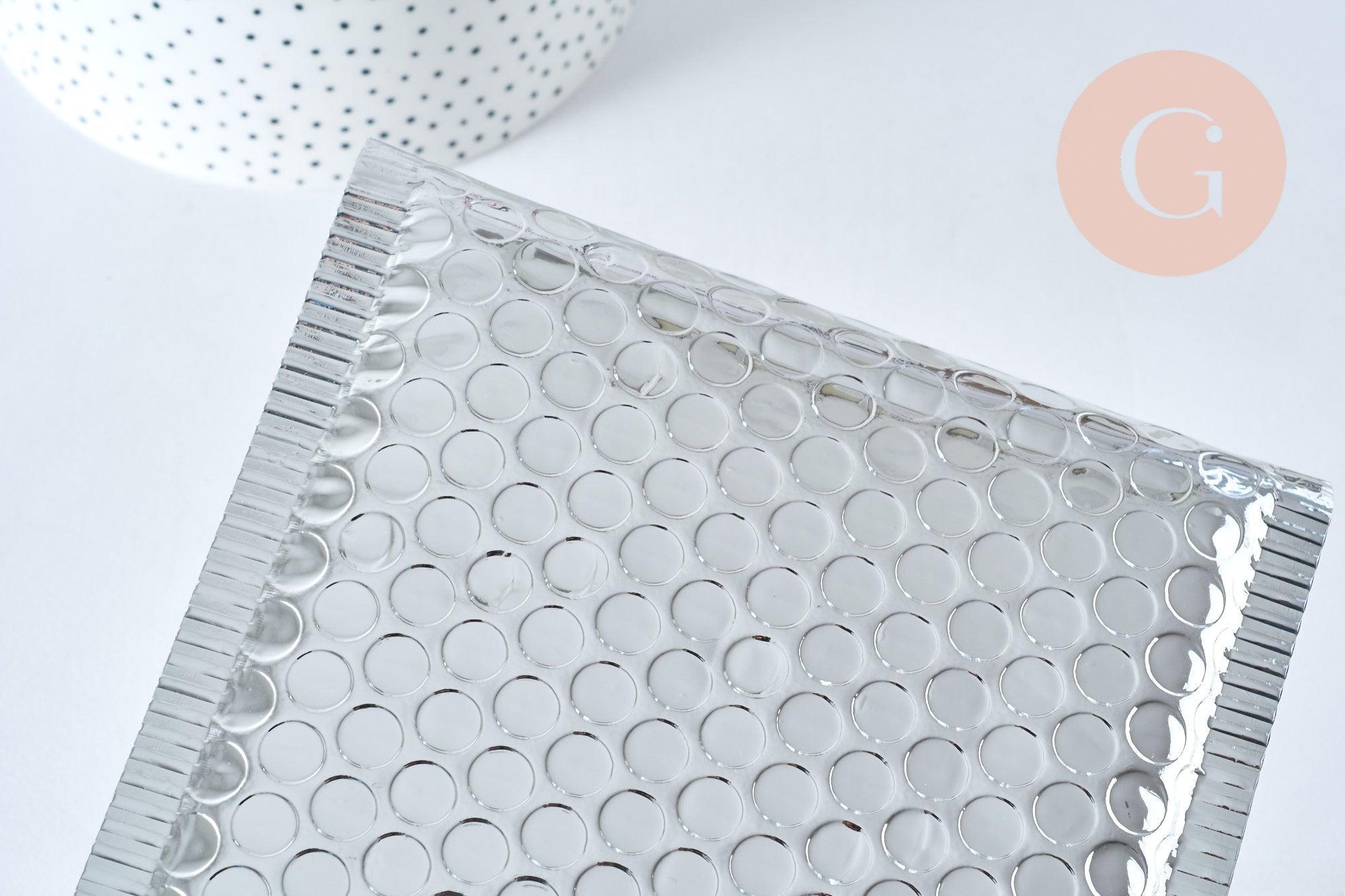 Enveloppes à bulles en plastique métallisé argent 22.5x15cm, x10 (G6812)