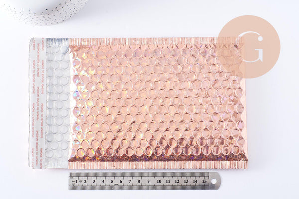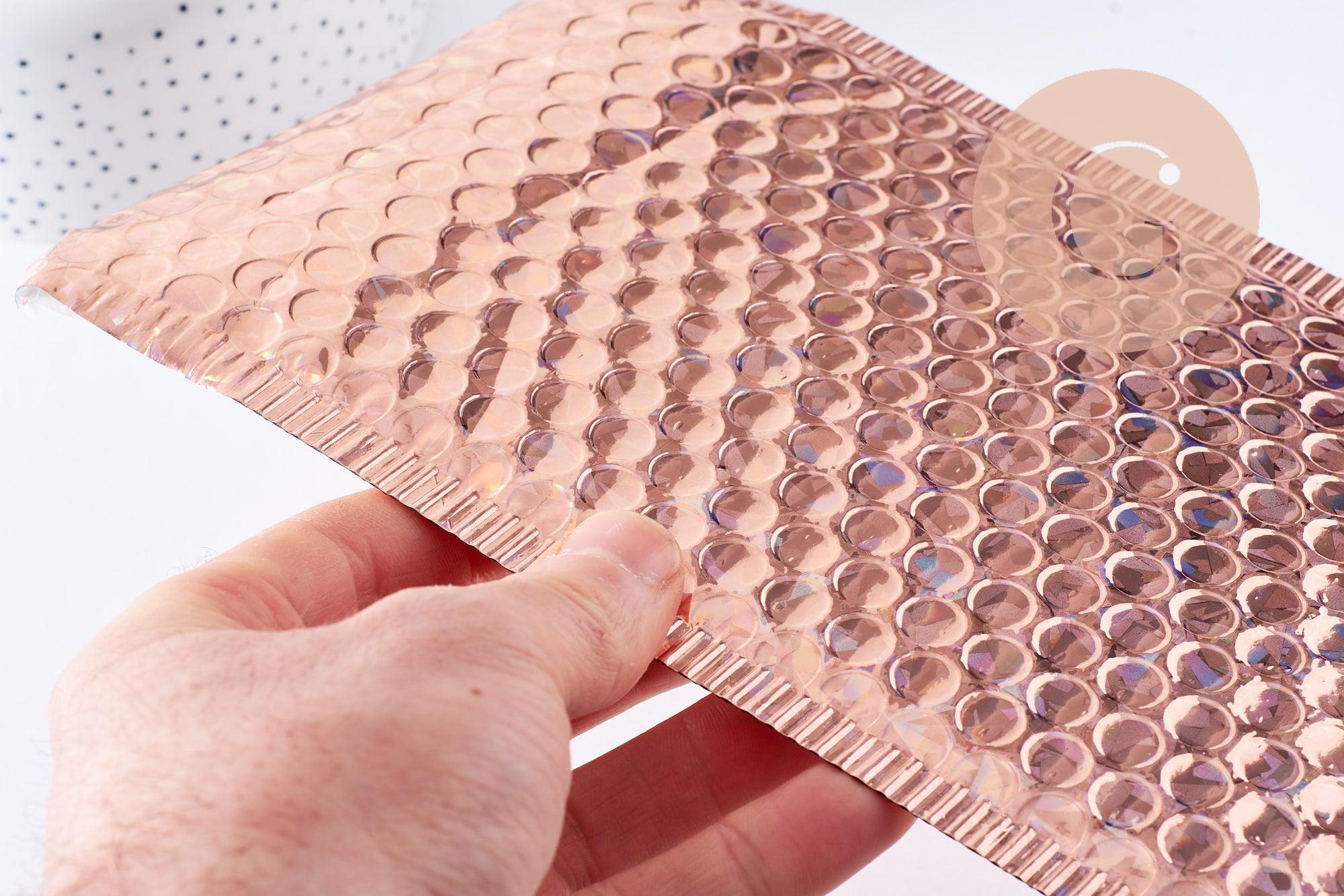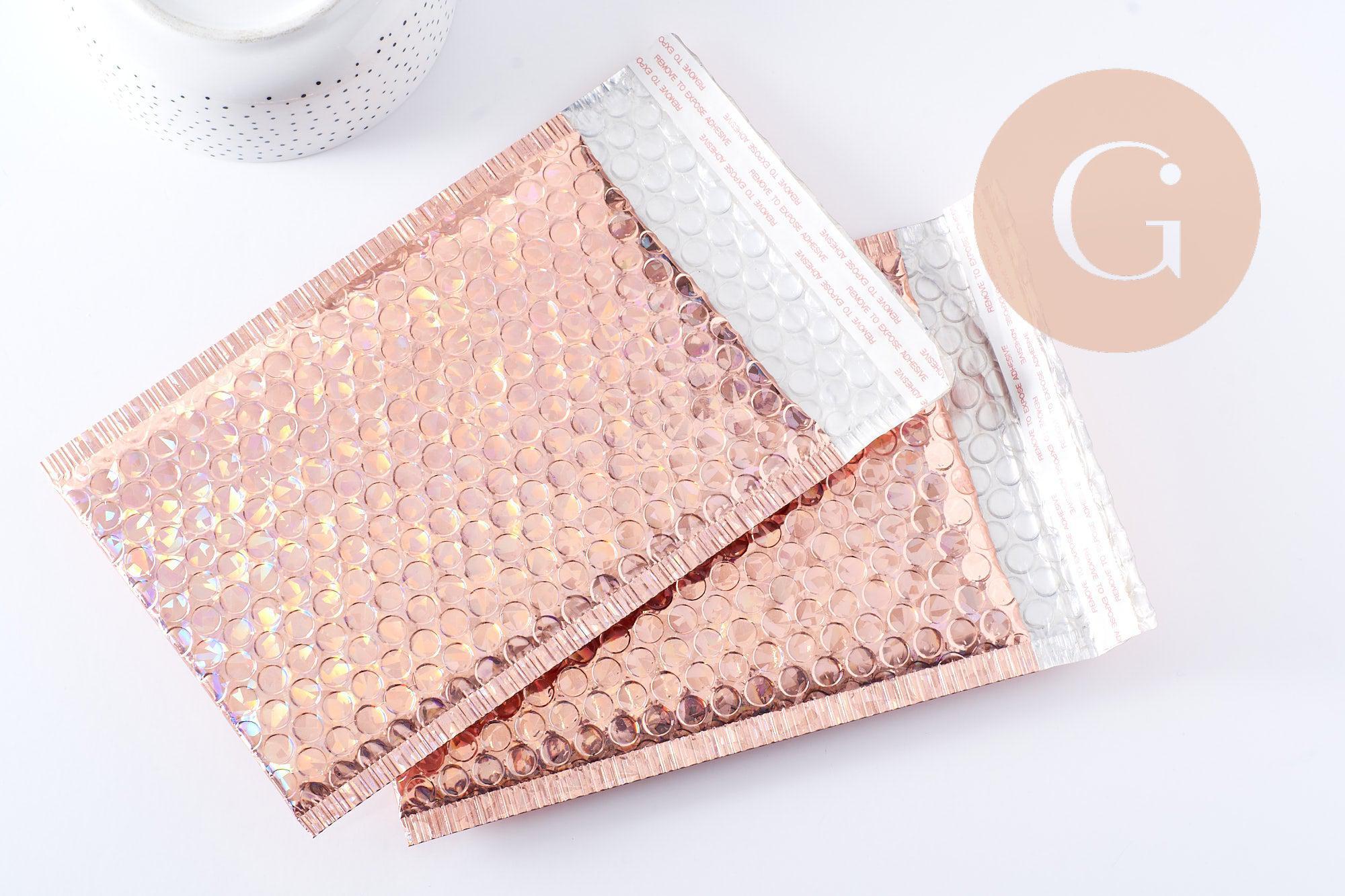 Add a touch of glamour to your mailings with these holographic pink metallic plastic bubble envelopes .