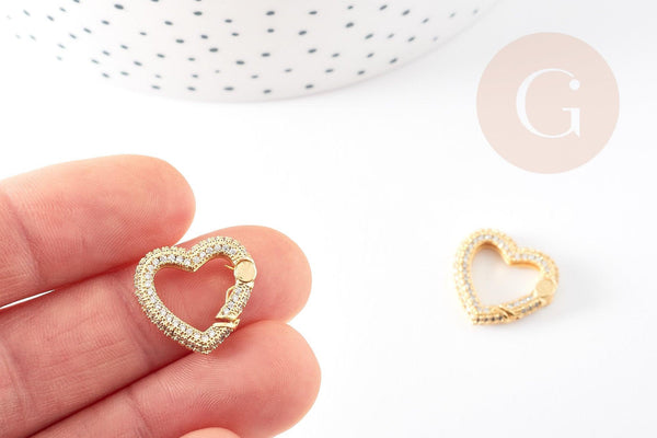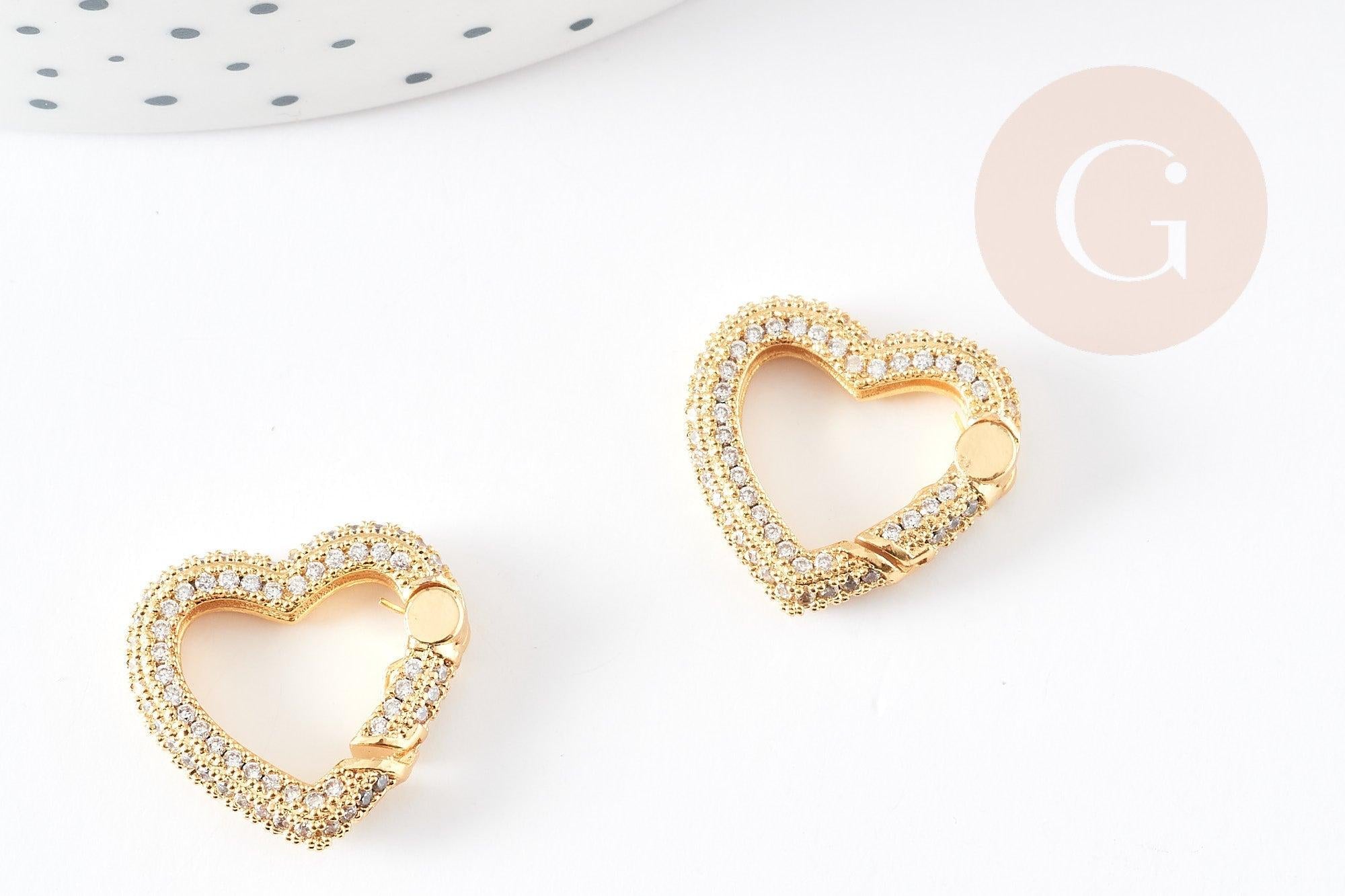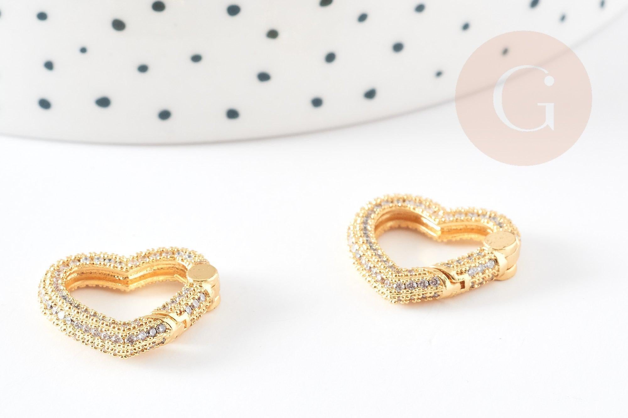 Add a touch of refinement to your creations with this sublime golden heart-shaped clasp, adorned with zircon rhinestones