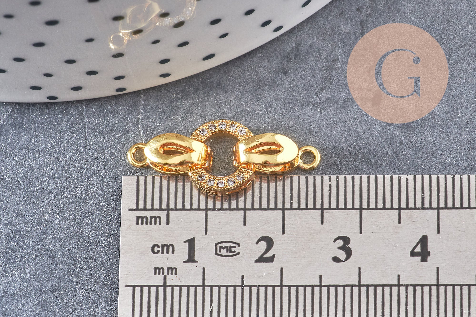 Fermoir à clipser anneaux laiton doré 18k strass 25.5mm, x1 (G2996)