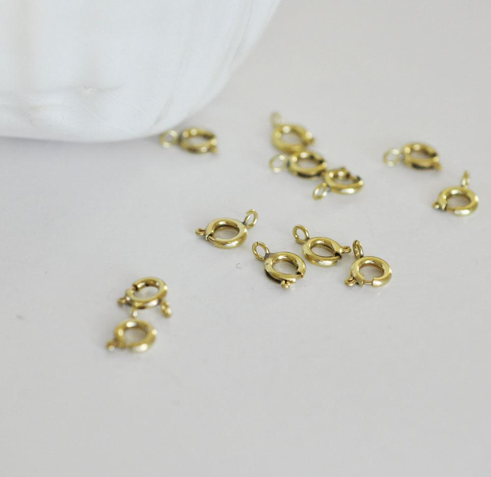raw brass marine clasps, creative supplies, raw laion supplies, jewelry making, lot of 50, 7mm A set of 50 golden brass clasps Findings for your necklaces, bracelets and necklaces. Diameter: 5mm Length (with ring): 7mm Some welding marks may appear...