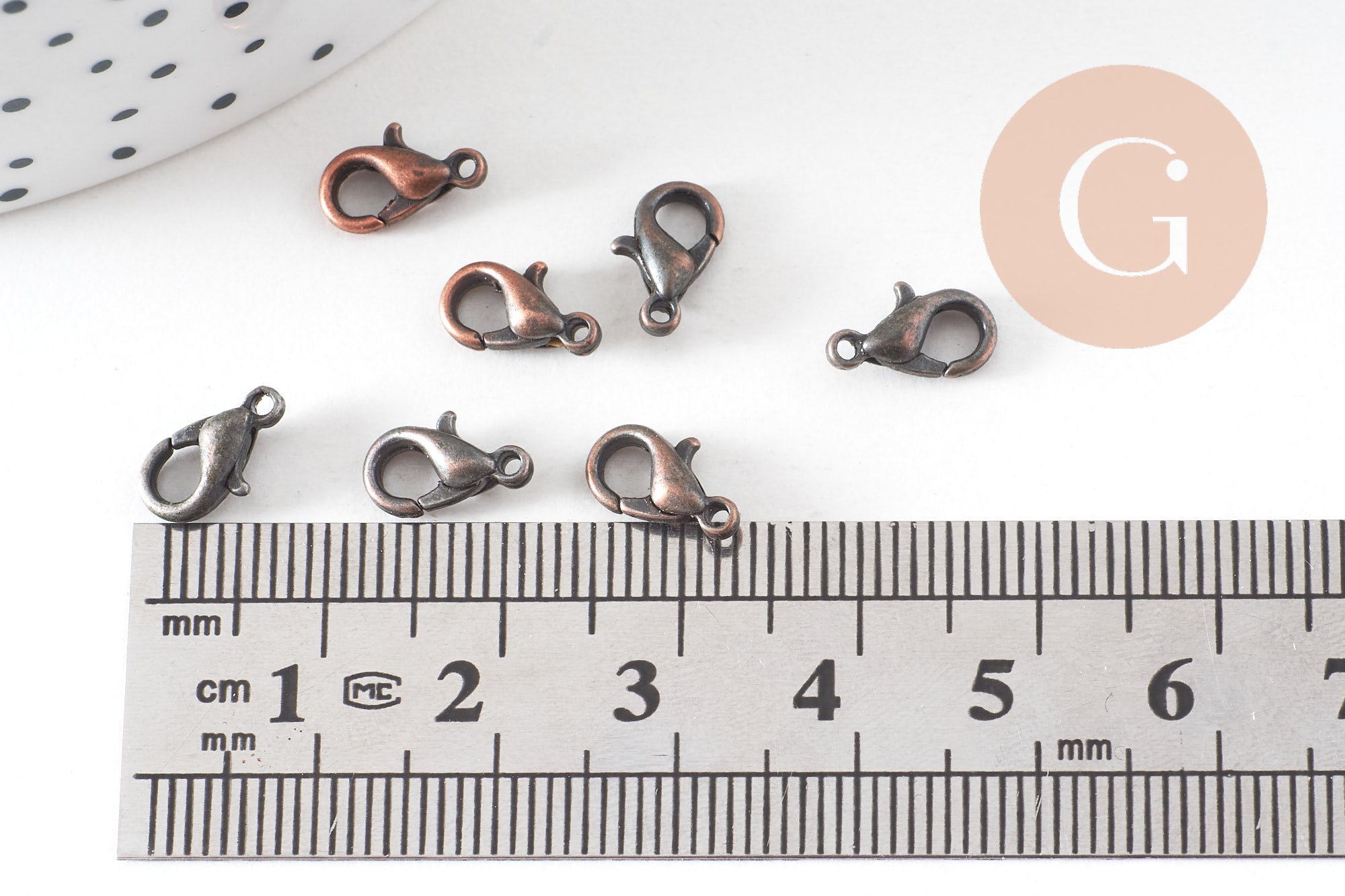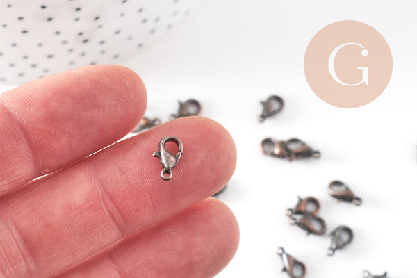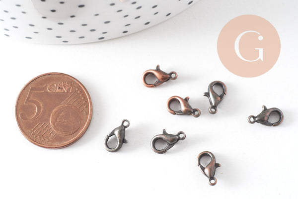Add a vintage touch to your creations with this set of 20 red copper-colored zamac lobster clasps . These strong and practical clasps are perfect for finishing necklaces, bracelets and other handmade jewelry.