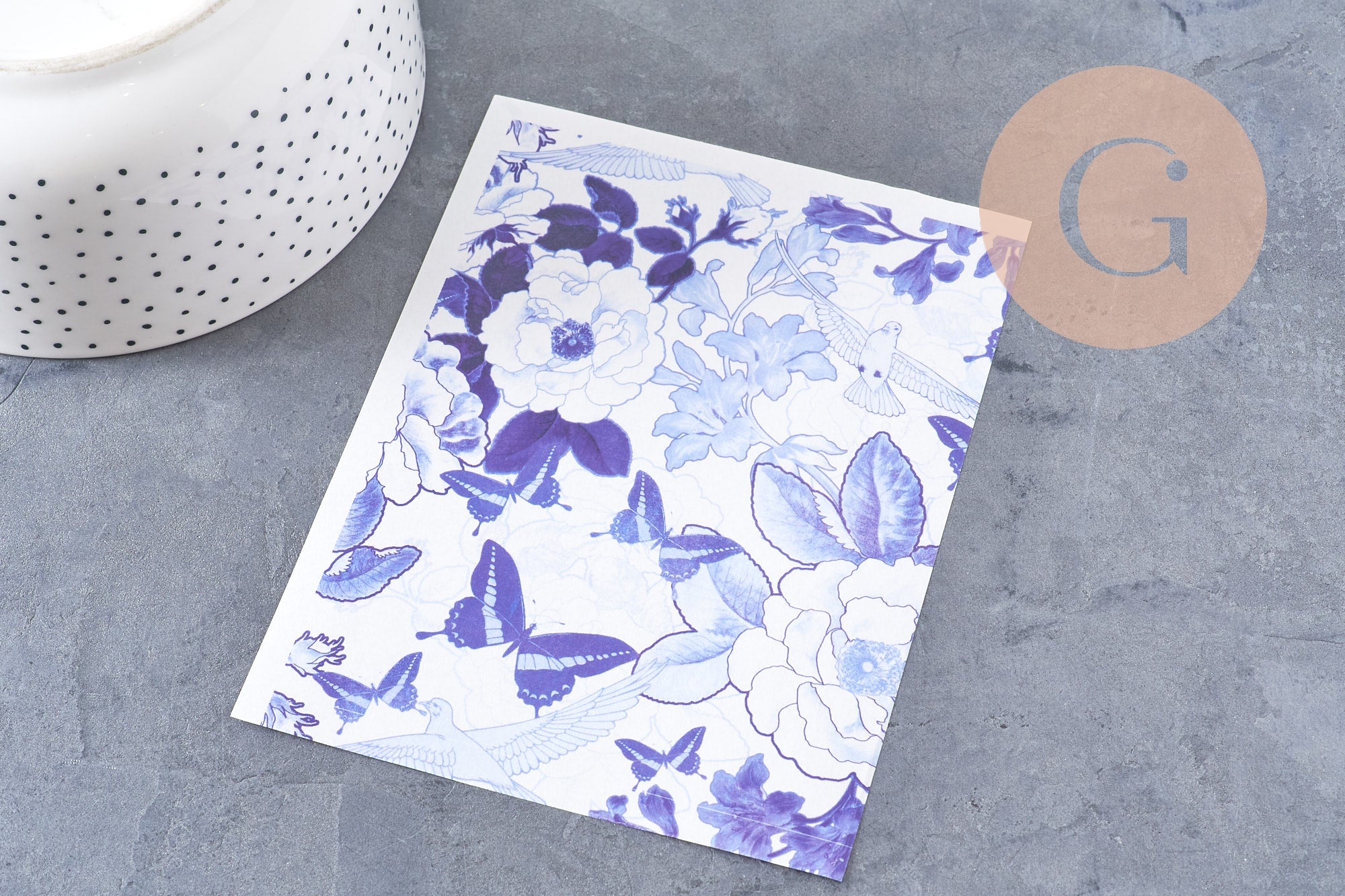 Let yourself be seduced by the timeless elegance of the Toile de Jouy pattern in a deep blue version. This transfer sheet will bring a classic and refined charm to your polymer clay creations, ideal for poetic and delicate jewelry.