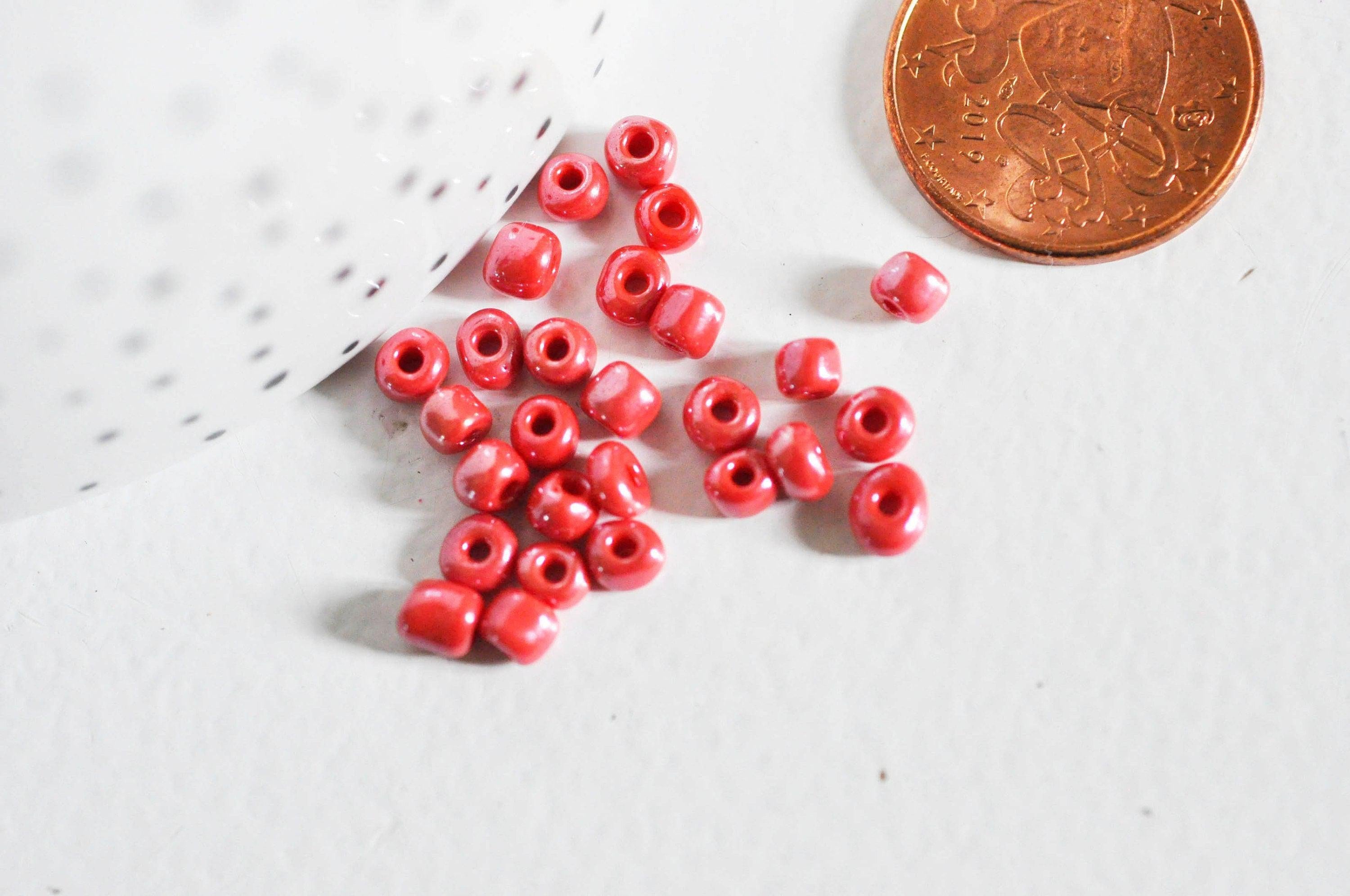 Grosses perles rocaille rouge nacré,fperles rocaille rouge opaque, diamètre 4mm x 10Gr (G3733)