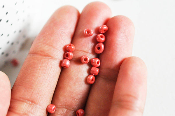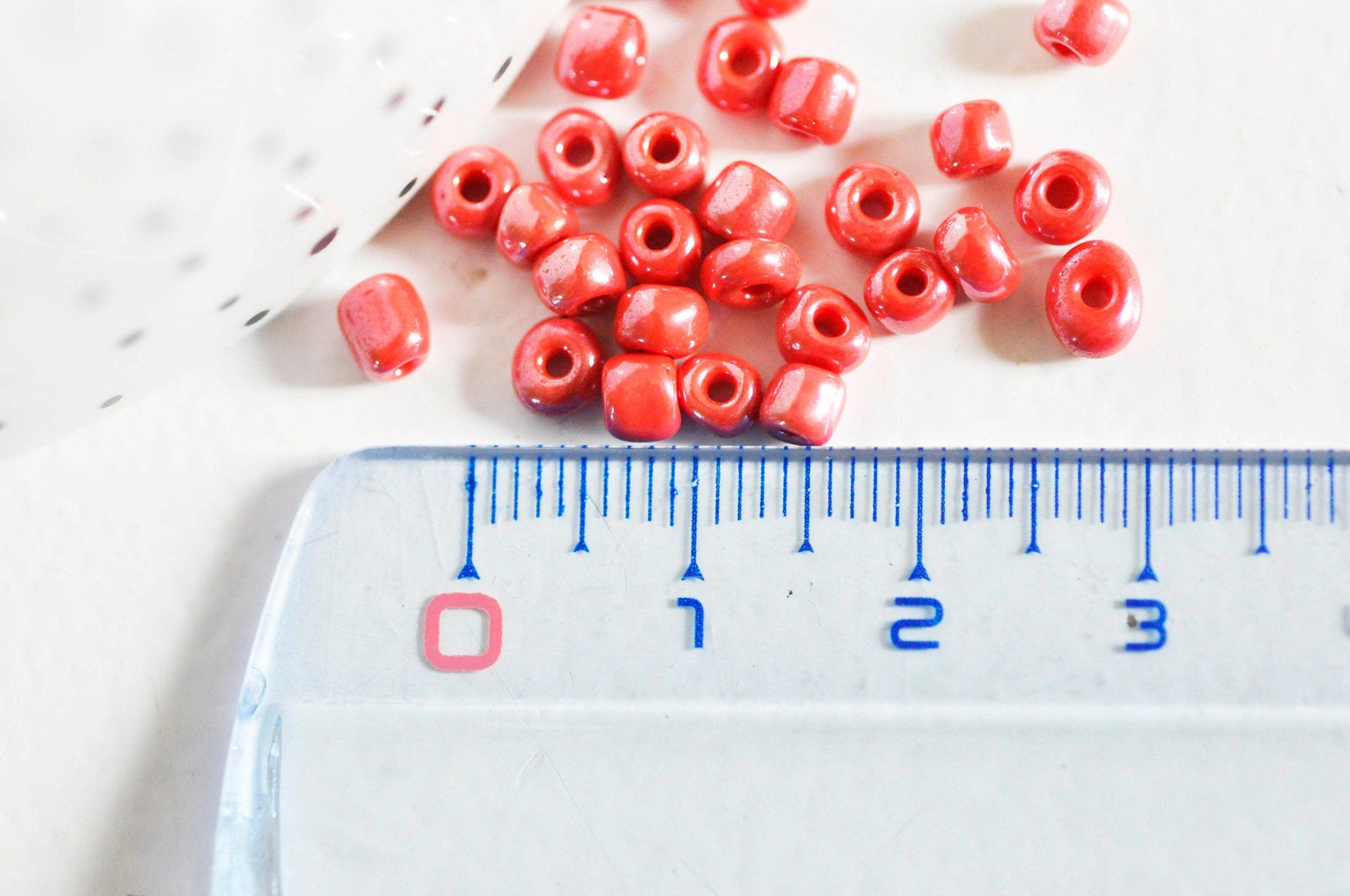 Large pearly red seed beads, opaque red seed beads, diameter 4mm x 10Gr (G3733)