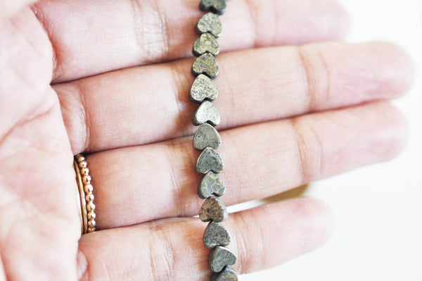 EP pyrite heart beads, pyrite beads, jewelry making, natural pyrite, pyrite stone heart, jewelry creation, 6mm, thread of 70 beads, G3408