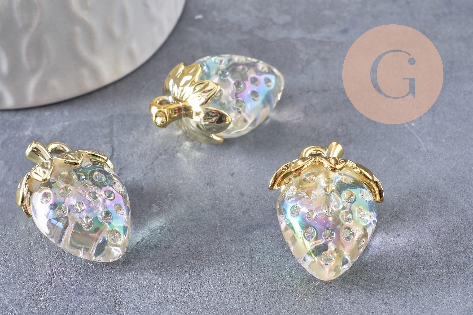 Add a delicious and original touch to your creations with this strawberry charm in transparent resin and golden brass .