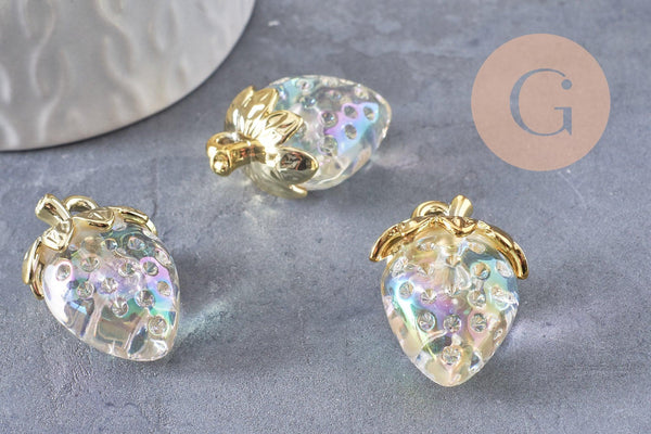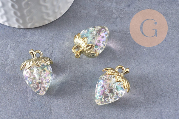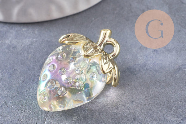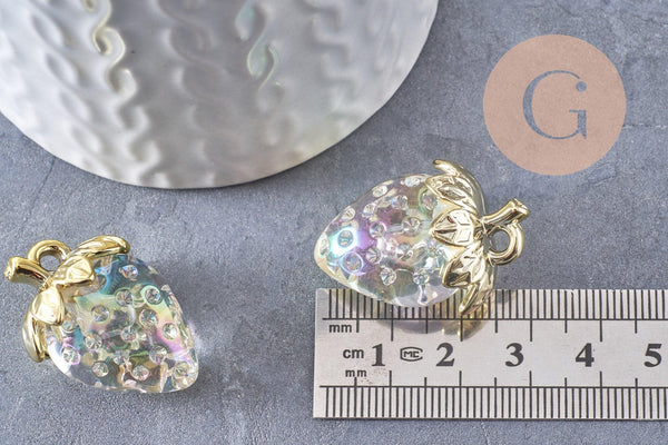 strawberry charm transparent resin gold brass 28.5mm, x1 (G10411)