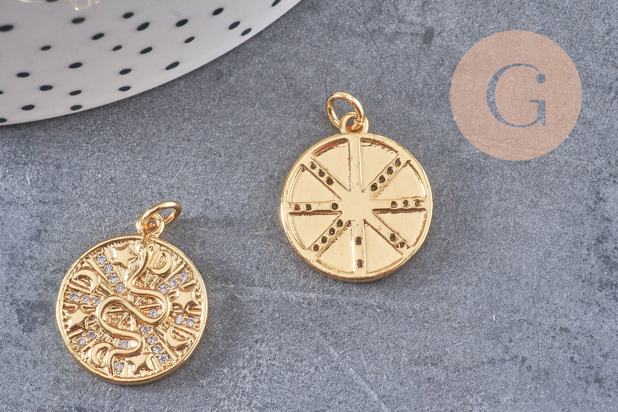 Médaille serpent laiton doré 18k cristal,sans nickel,pendentif animal, Pendentif zircon,18.5mm, x1 G5518