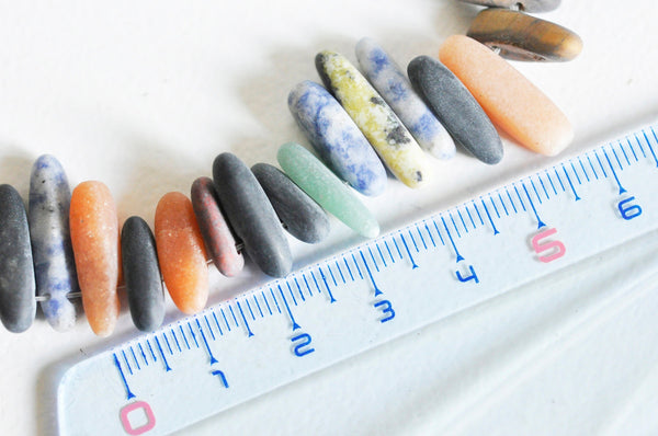 oval bead chips sandblasted mixed stone, howlite sodalite aventurine jasper stone, stone jewelry creation, 11-19mm, 40cm wire