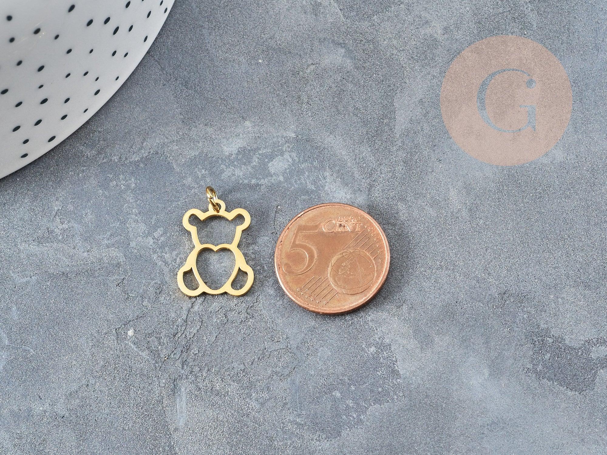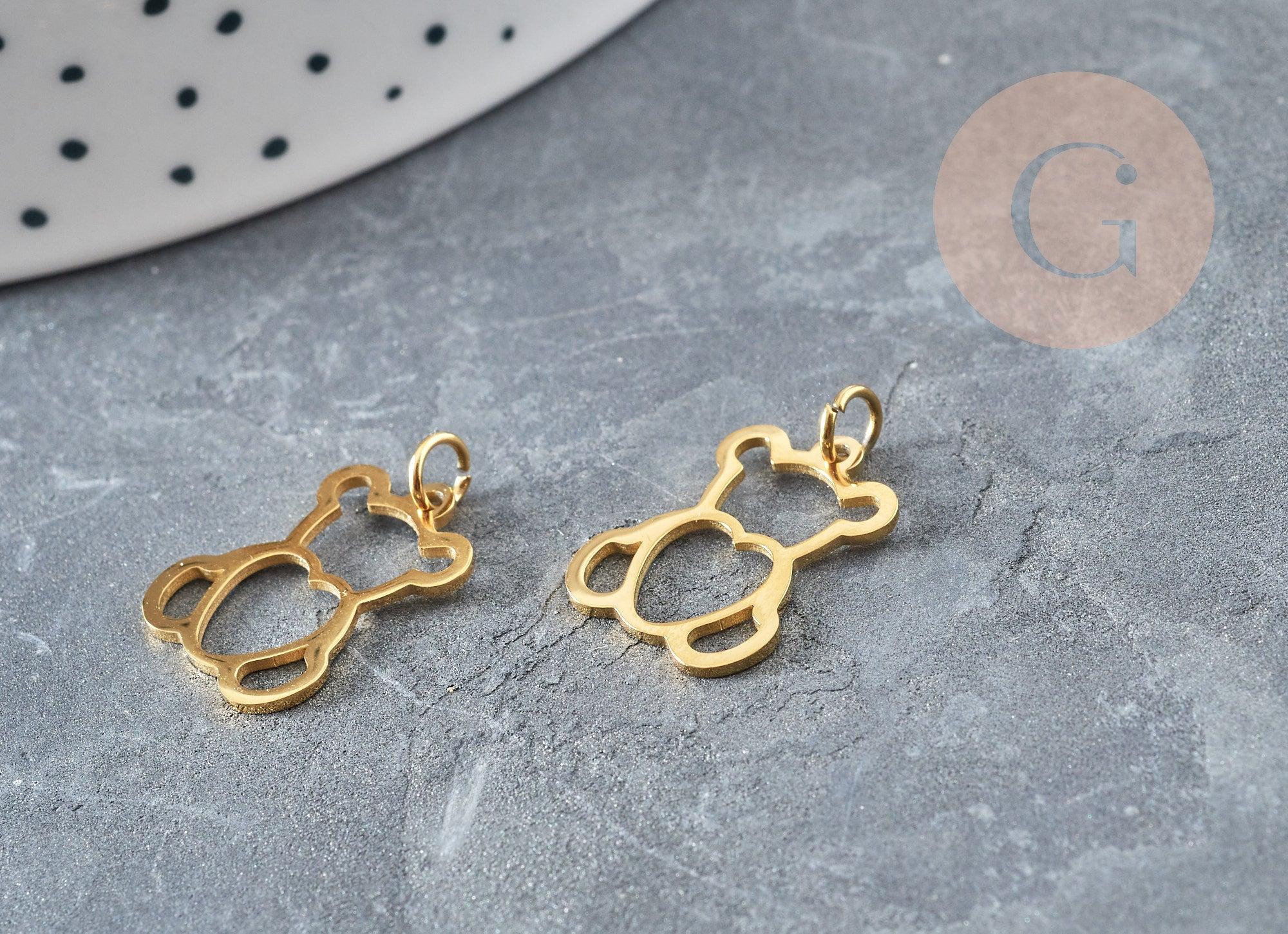 A stainless steel gold-plated pendant in the shape of a teddy bear