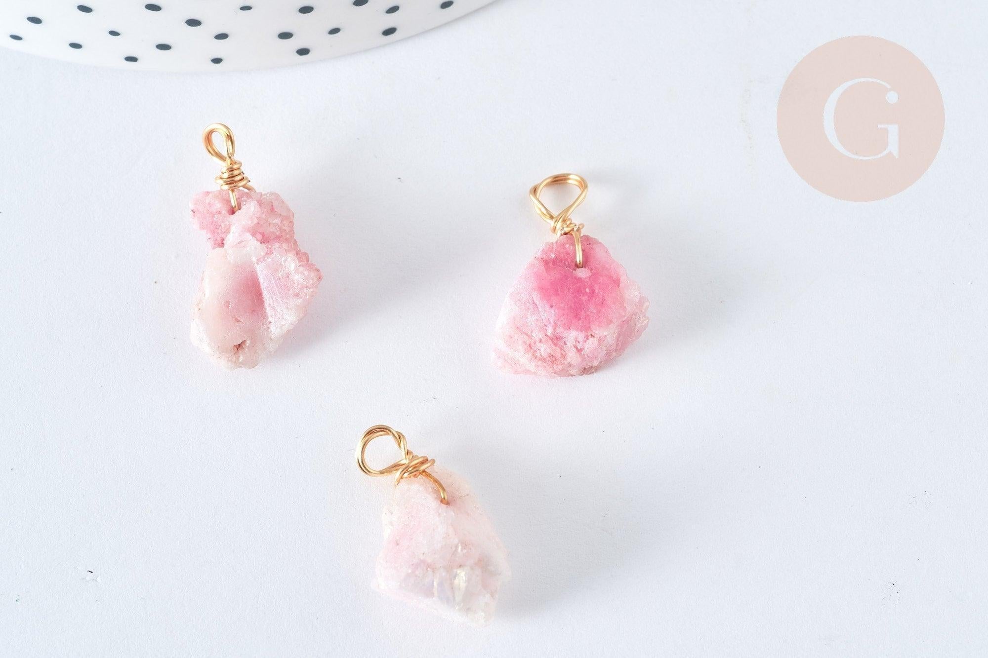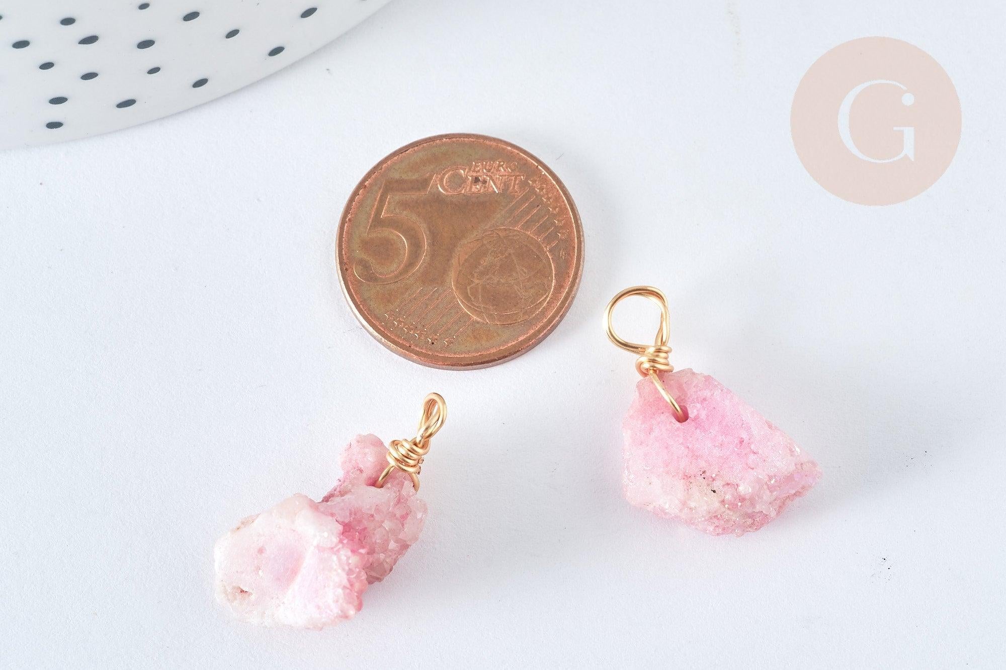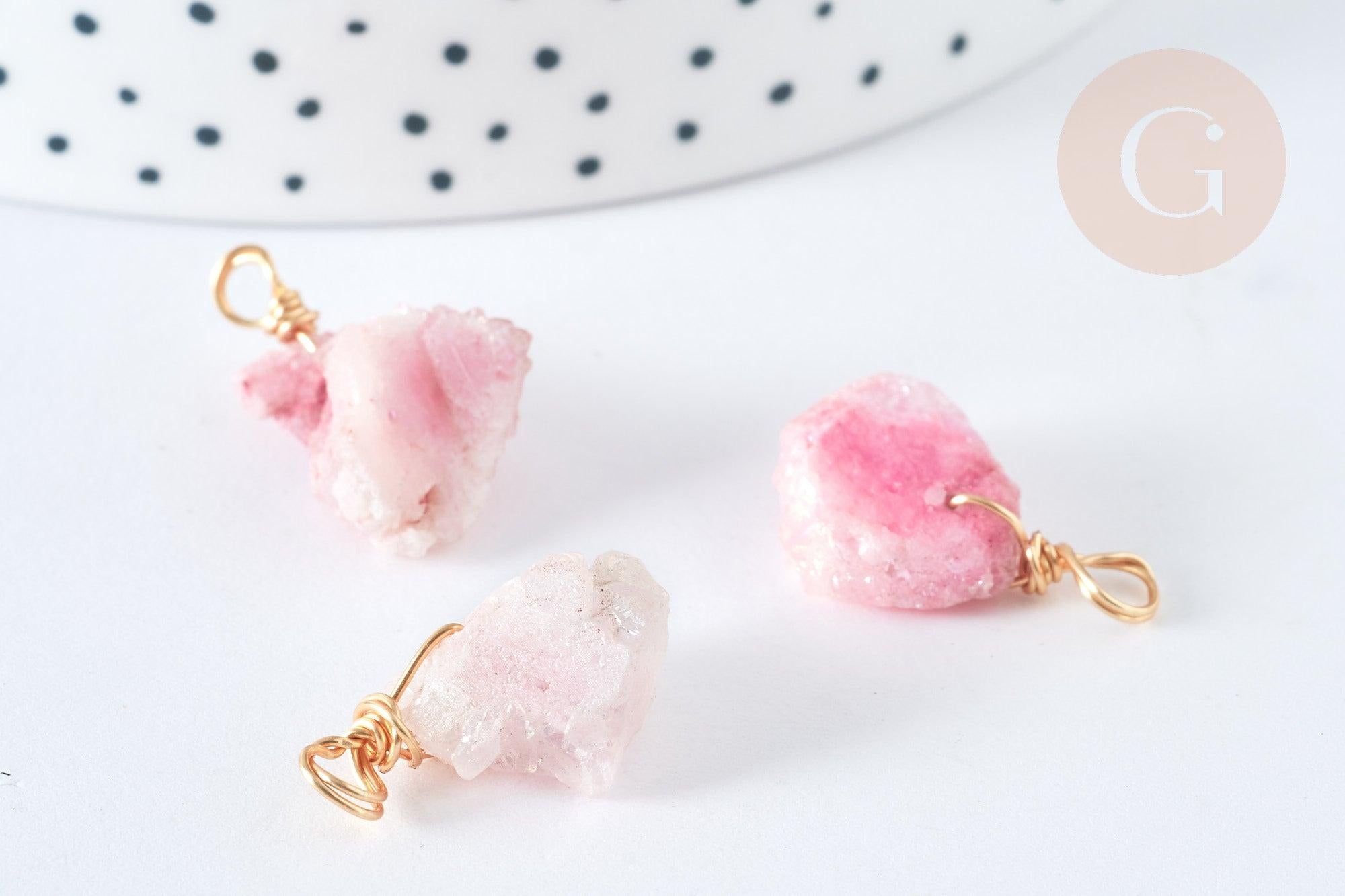 Pendentif Agate teintée naturelle nugget brute rose fer doré 13~32mm, pierre naturelle,x1 (G7584)