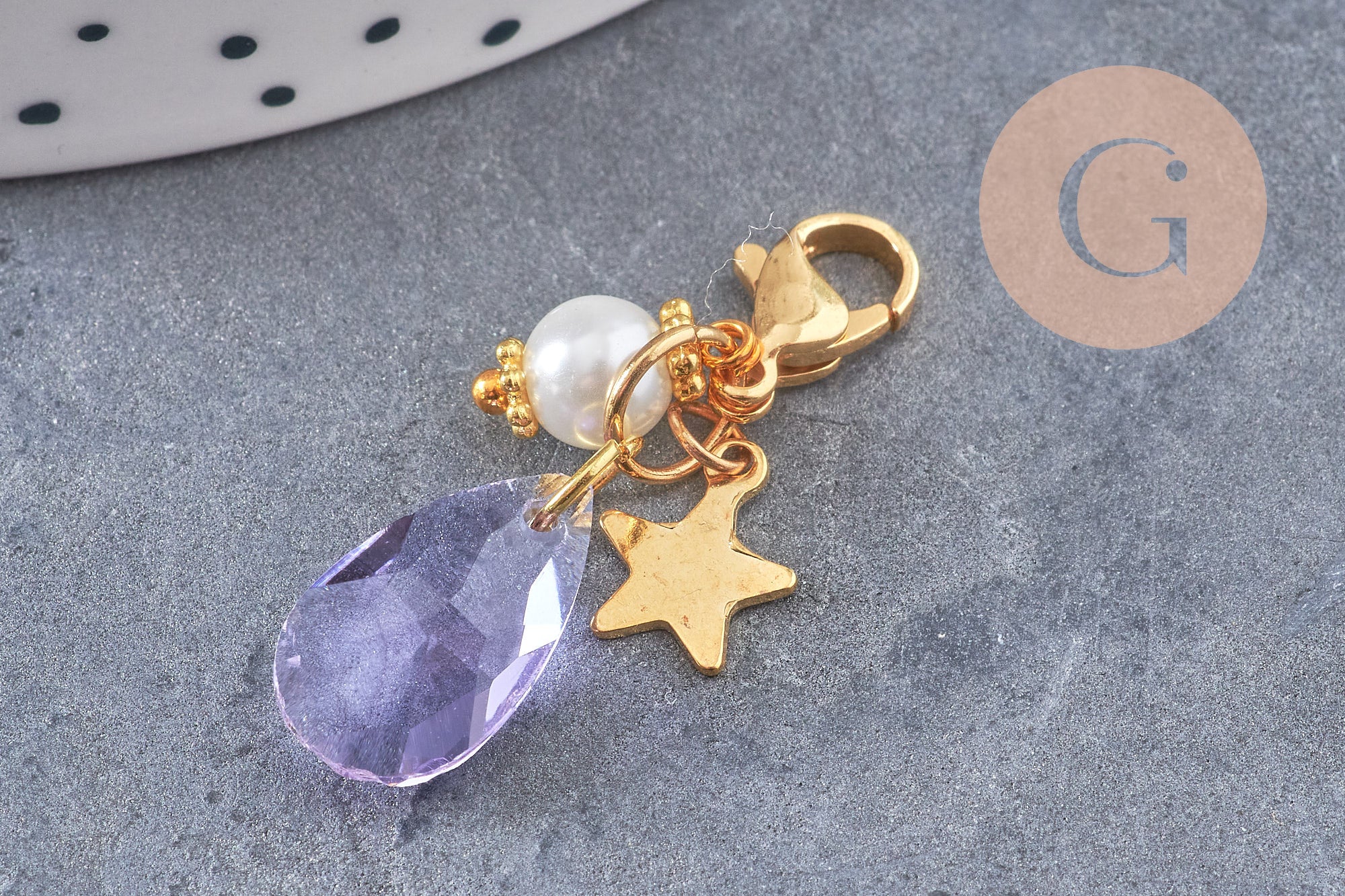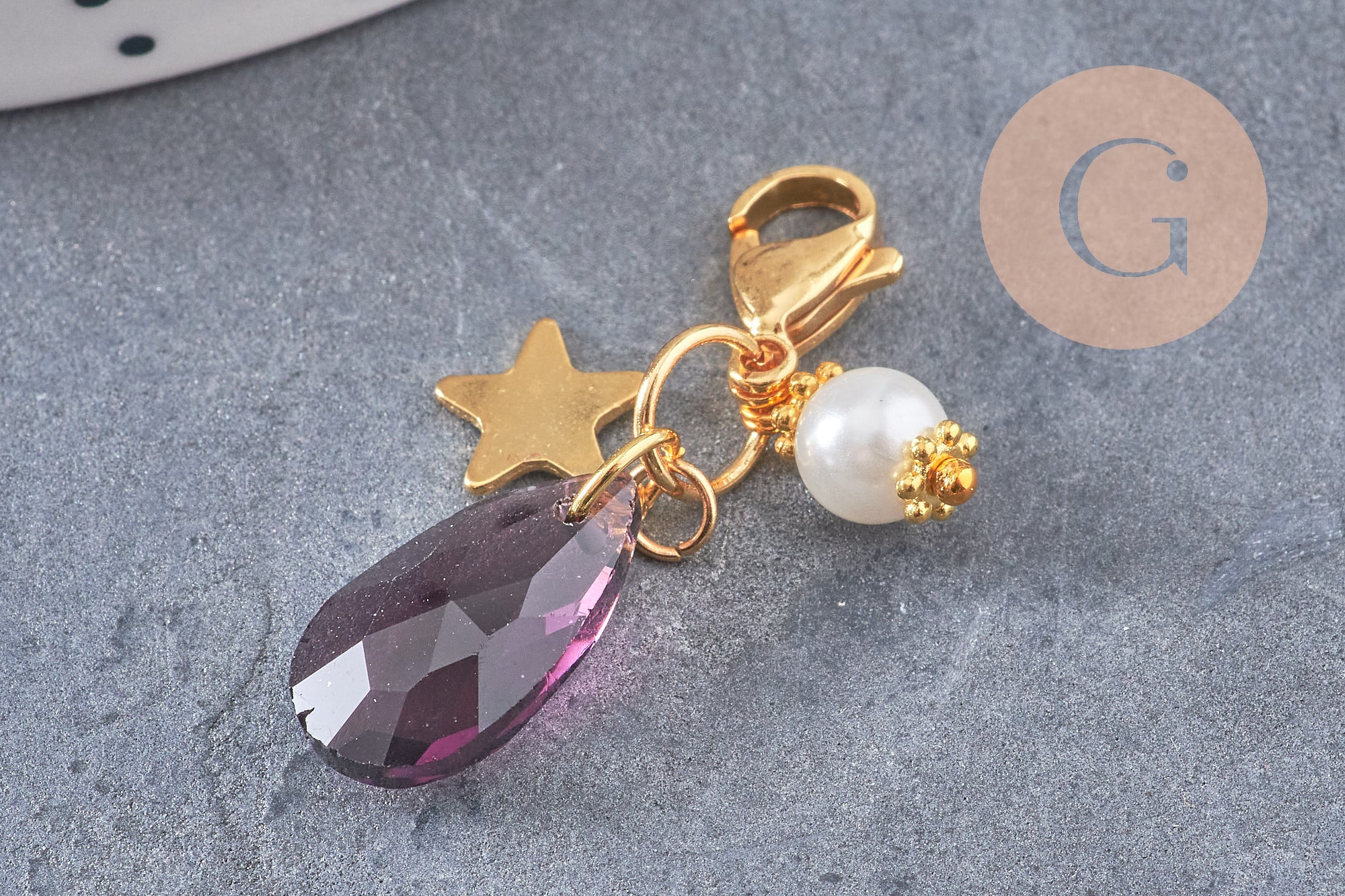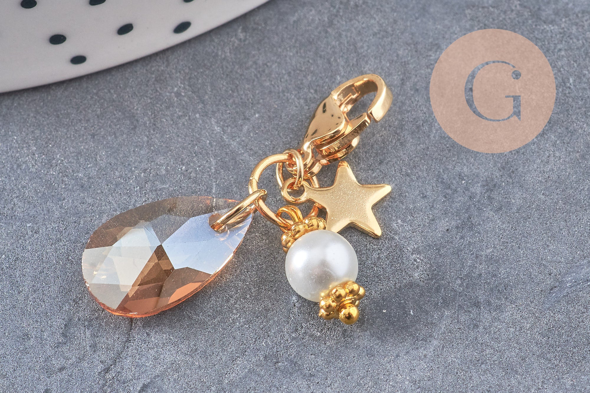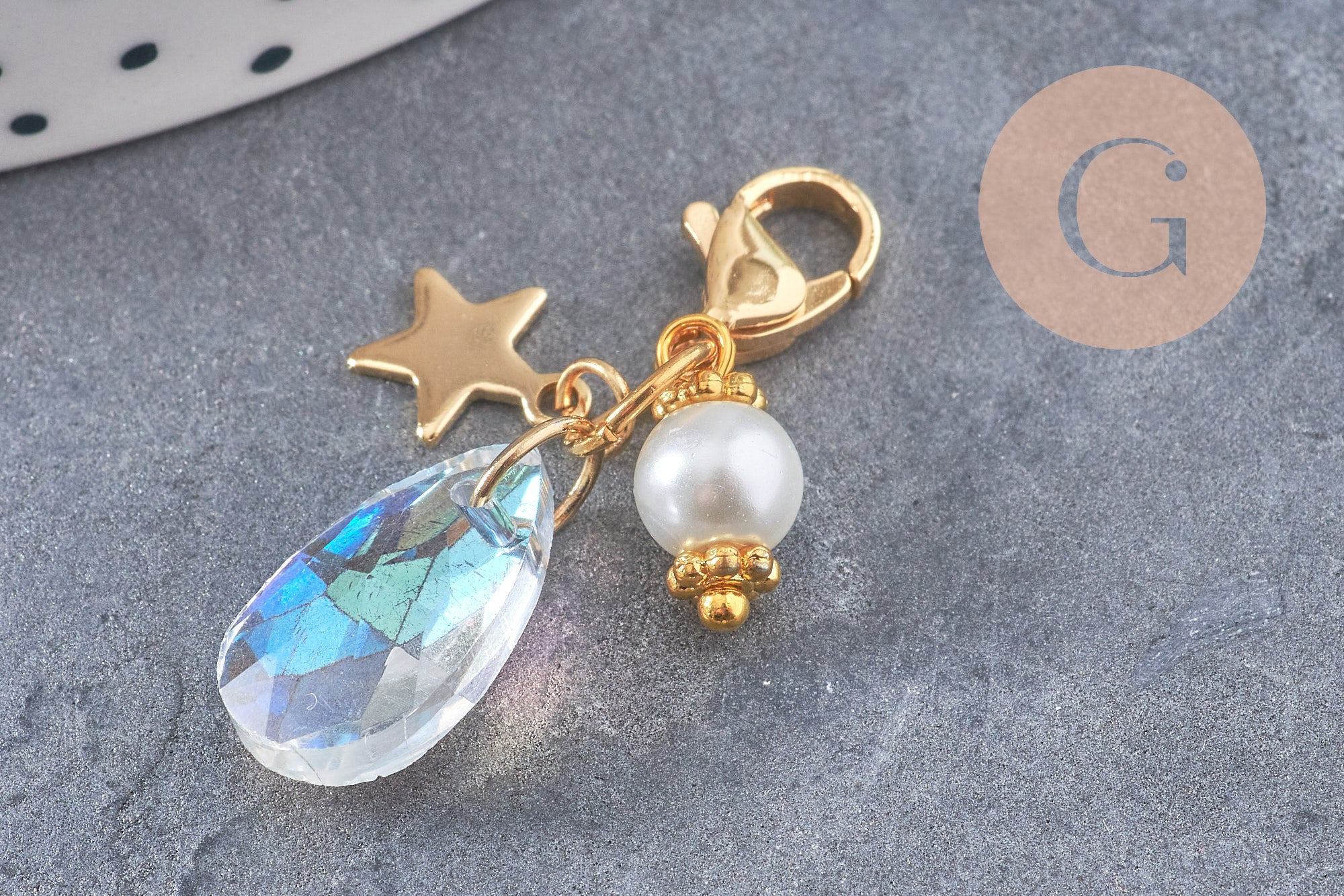 Use this wonderful pendant with 34mm clear AB faceted glass clasp . This one is made of nickel-free stainless steel gold-plated . Make beautiful DIY jewelry creations with this charm pendant with a gold finish. Equipped with a clasp , it will slide perfectly onto your jewelry findings to create original jewelry!
