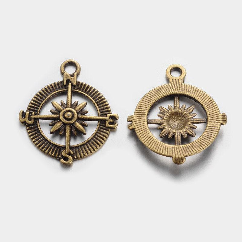 EP BRONZE compass pendant, jewelry making supplies, bronze pendant, creative supplies, bronze charm, bronze findings, 2.3cm, x 5