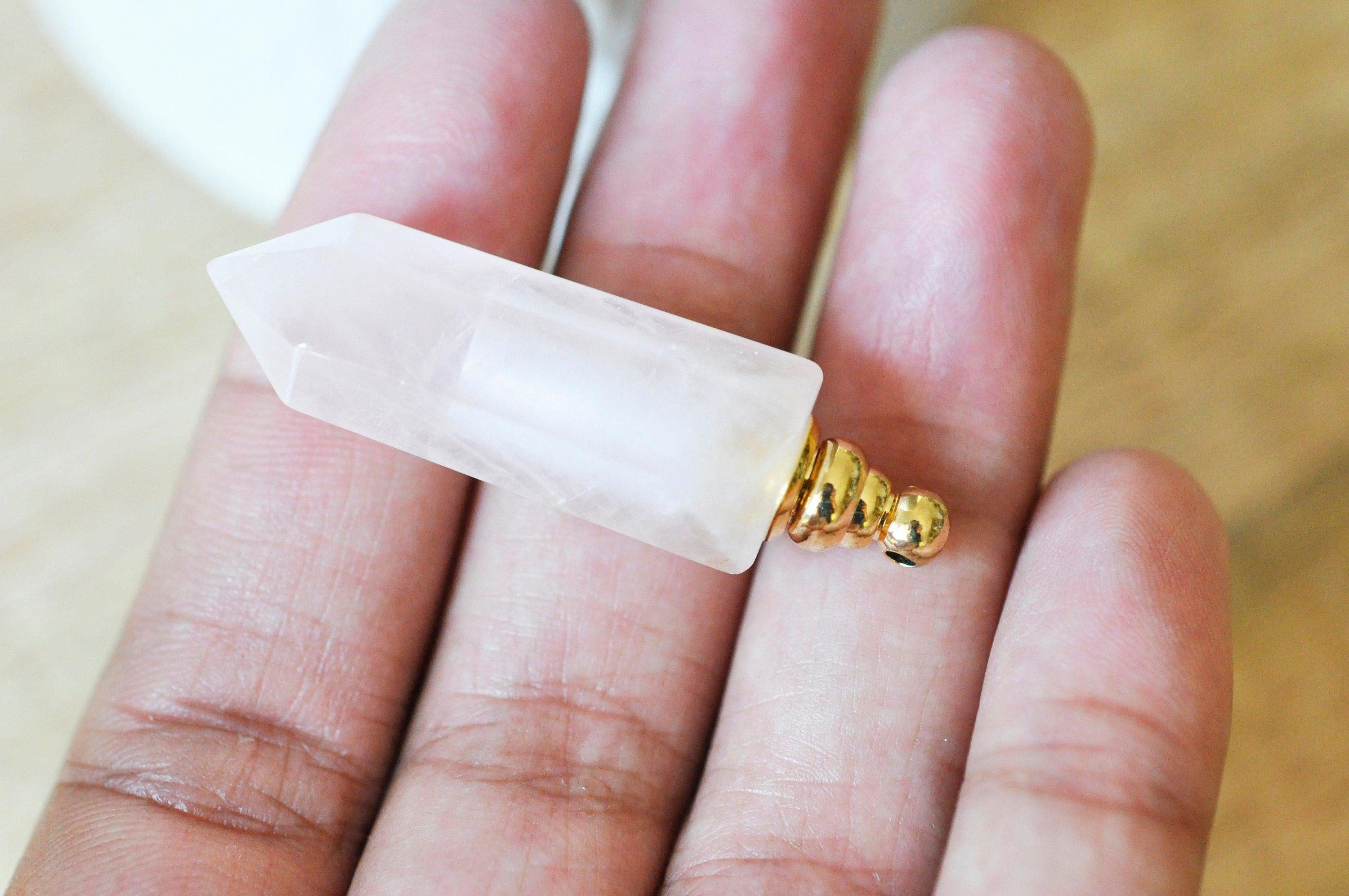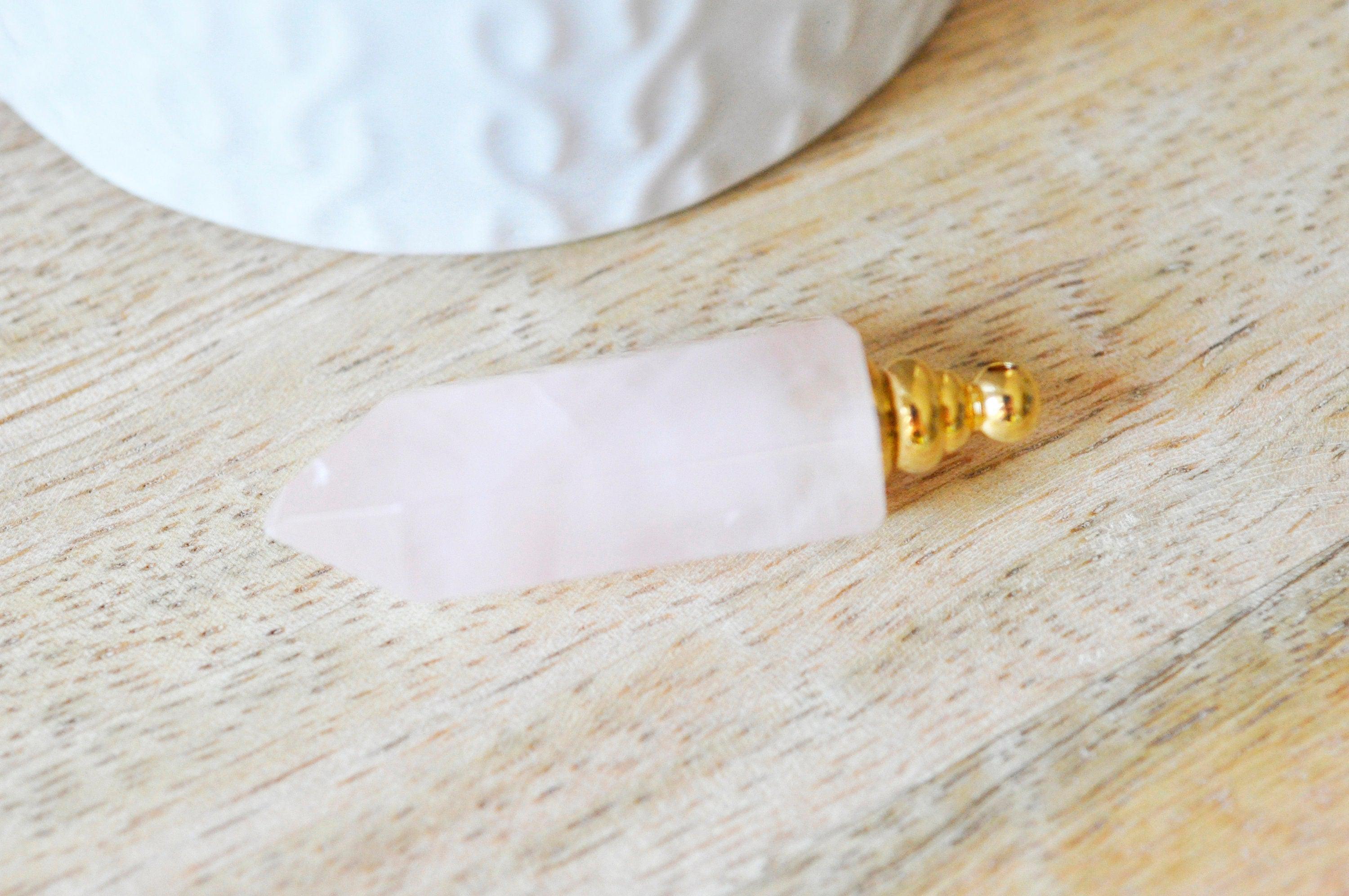Fall in love with this natural rose quartz pendant to create trendy, bohemian-chic jewelry. It opens and can hold a little of your favorite perfume.