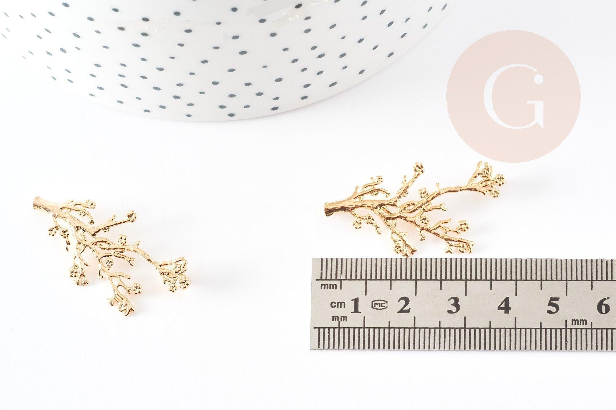 Pendentif branche feuille laiton doré 18K 37.5mm, x1 (G3566)