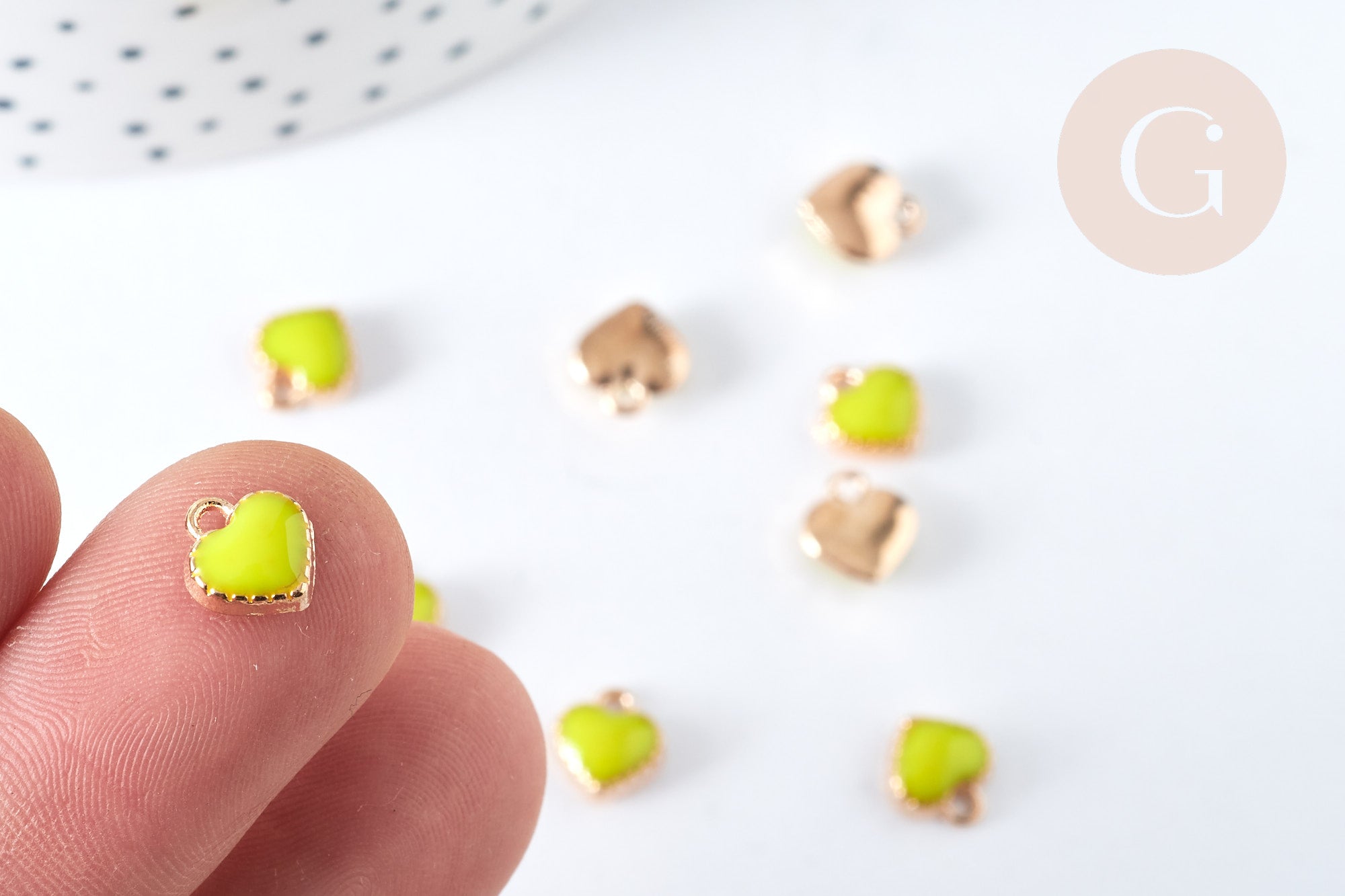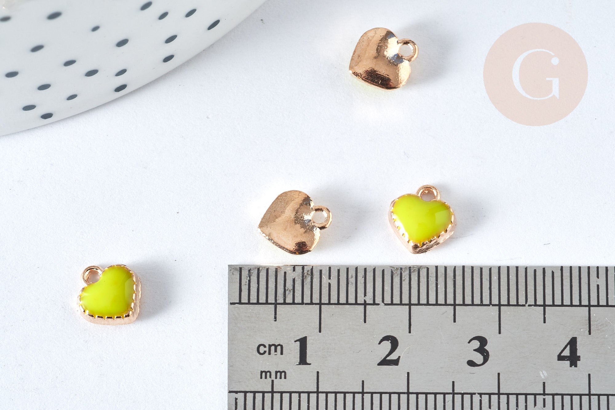 This gold zamac heart charm is covered, on one side, with a colored yellow enamel.