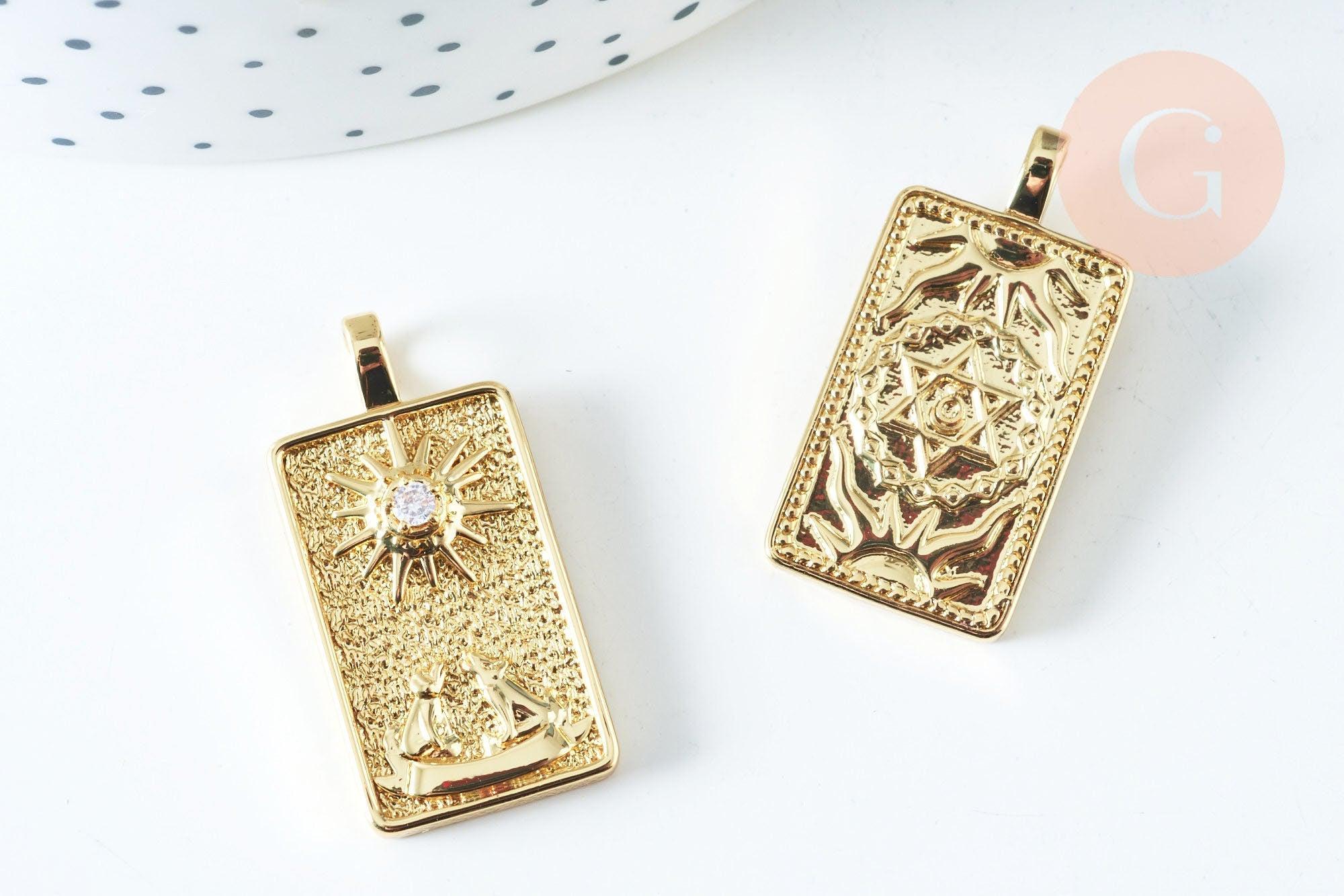 EP Pendentif carte de tarot de Marseille La Lune en laiton zircon 30mm x1 G6423