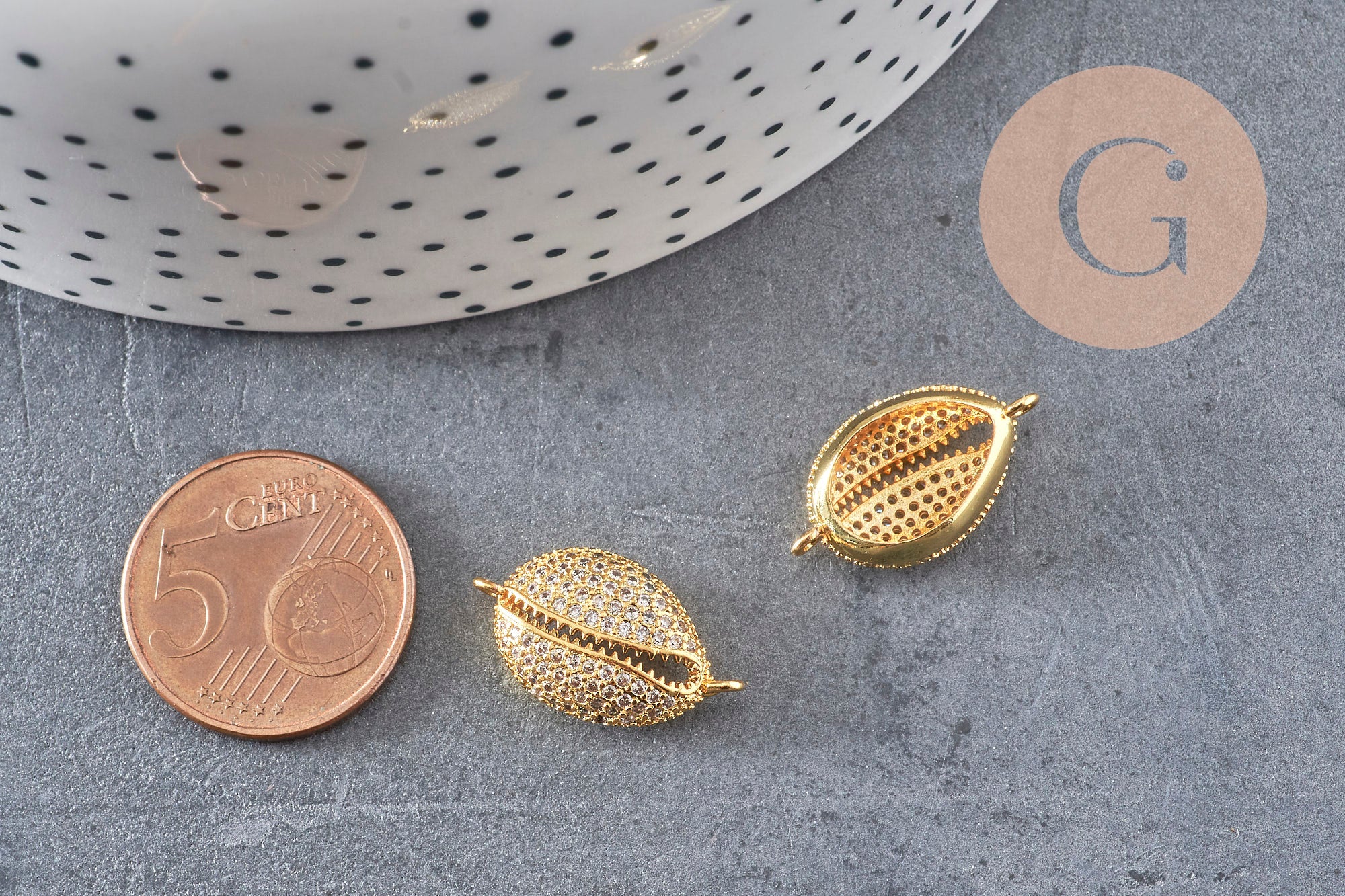 18K gold lairon cowrie pendant with white zircon, shell pendant, nickel-free jewelry creation, gold shell pendant, 21mm, each