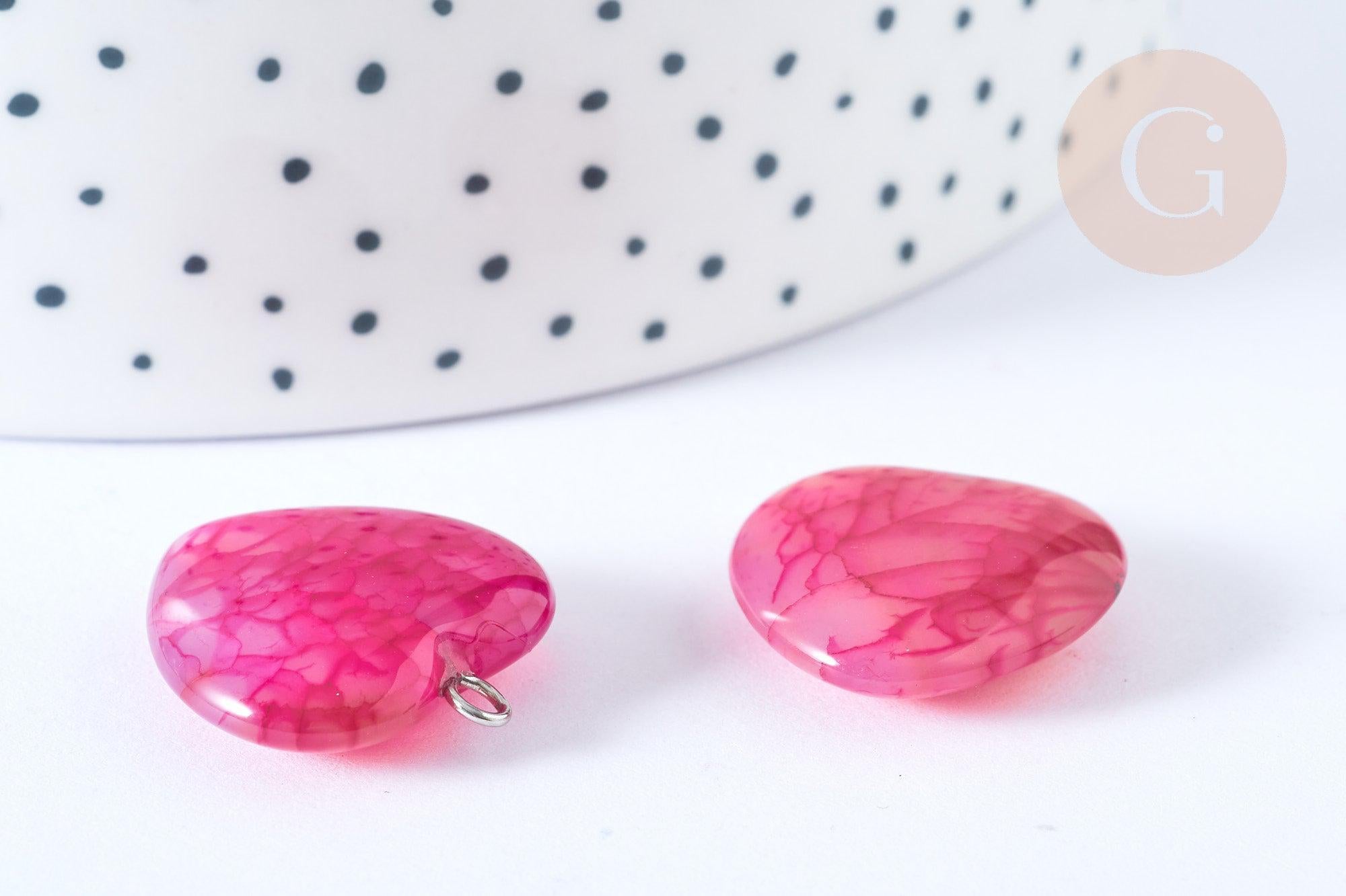 Fall for this heart pendant in natural Brazilian agate dyed on its silver iron support. You can create magnificent necklaces, necklaces and earrings using this very trendy pendant.