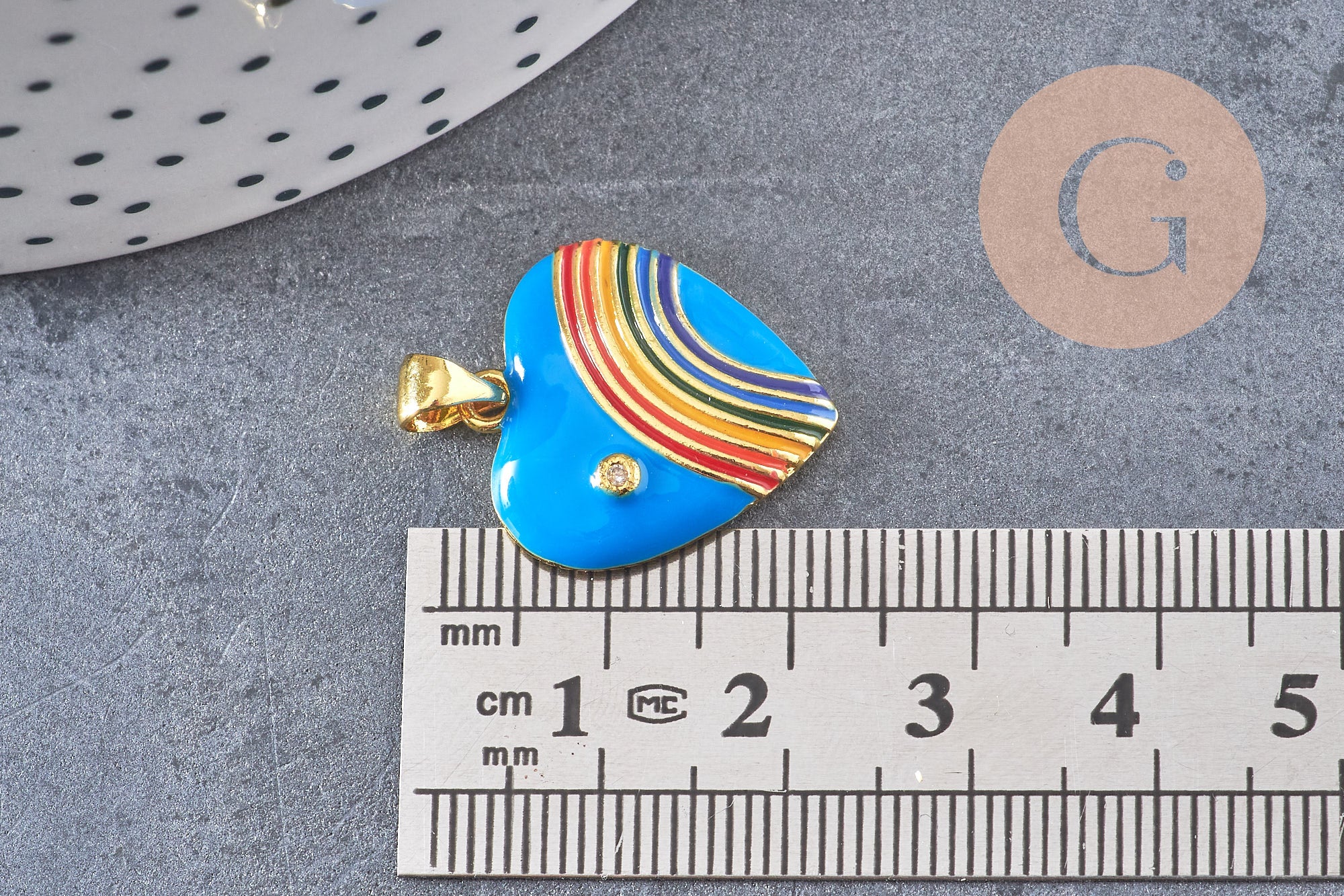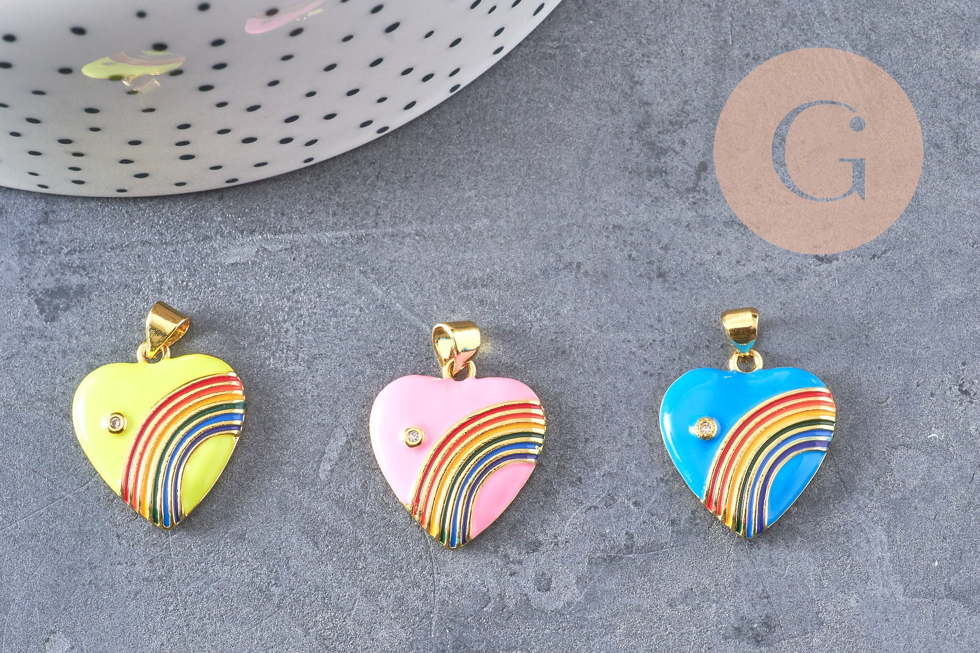 A heart pendant in 18K gold-plated brass and rainbow-colored enamel with zircon, findings to always have in your toolbox to create all the jewelry on the theme of love and good humor.