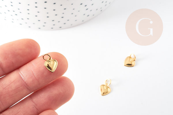 Gold-plated brass heart pendant, creative supplies, nickel-free pendant, jewelry creation, gold-plated heart, gold-plated brass pendant, 10mm, set of 5