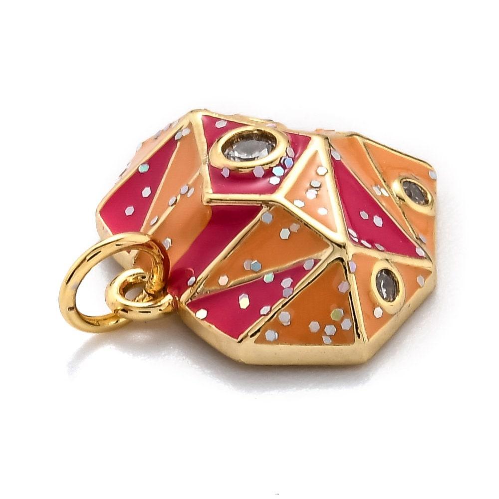 An original heart pendant with colorful facets in enamel and decorated with zircons. Wear it as a talisman on a lucky charm necklace.