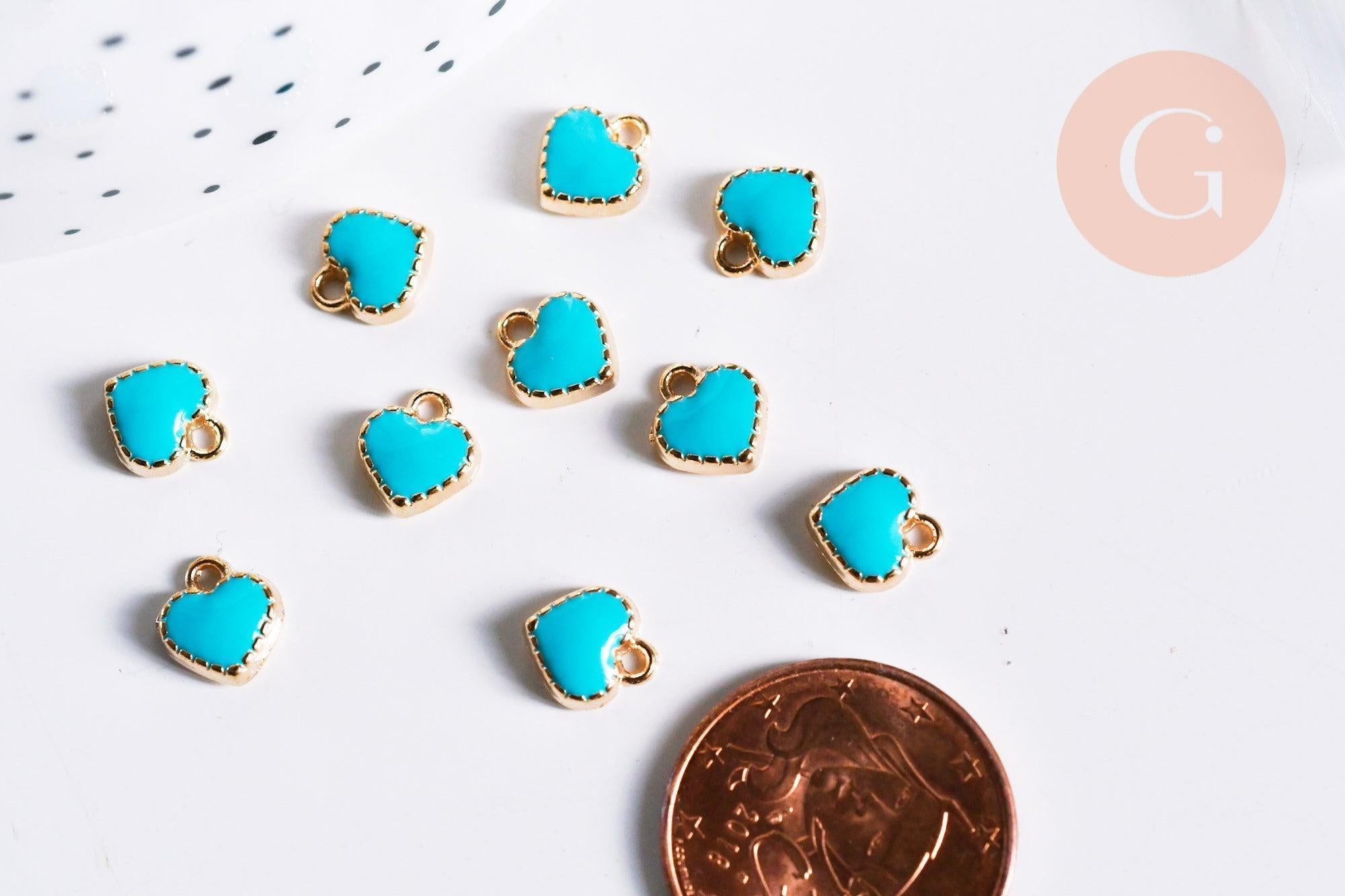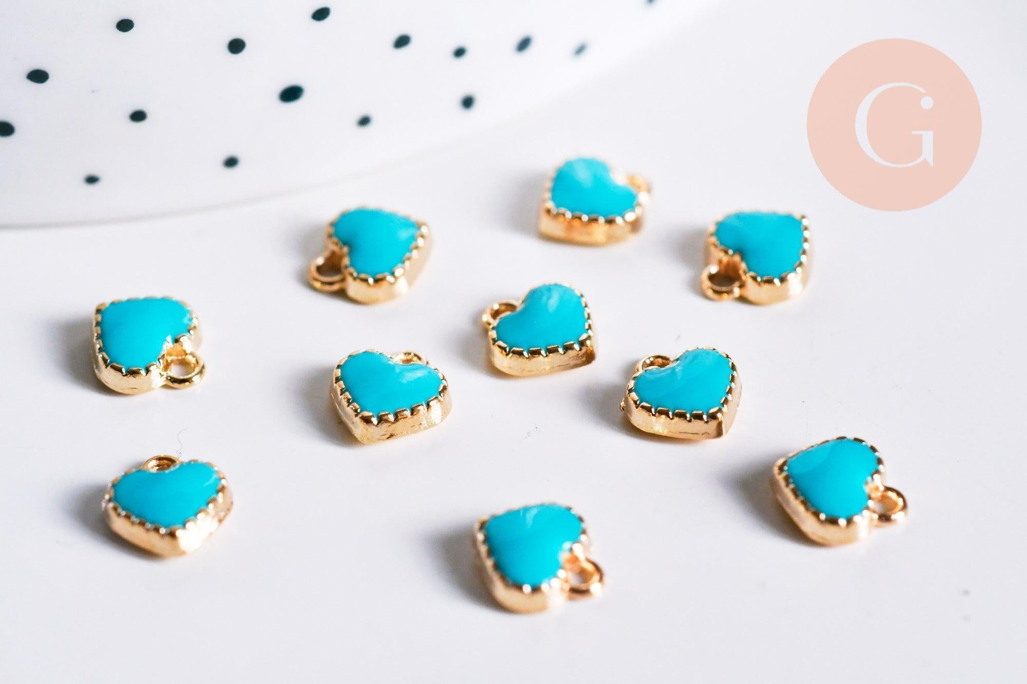 A pretty golden heart pendant in gold zamac and turquoise blue enamel for your DIY jewelry creations .