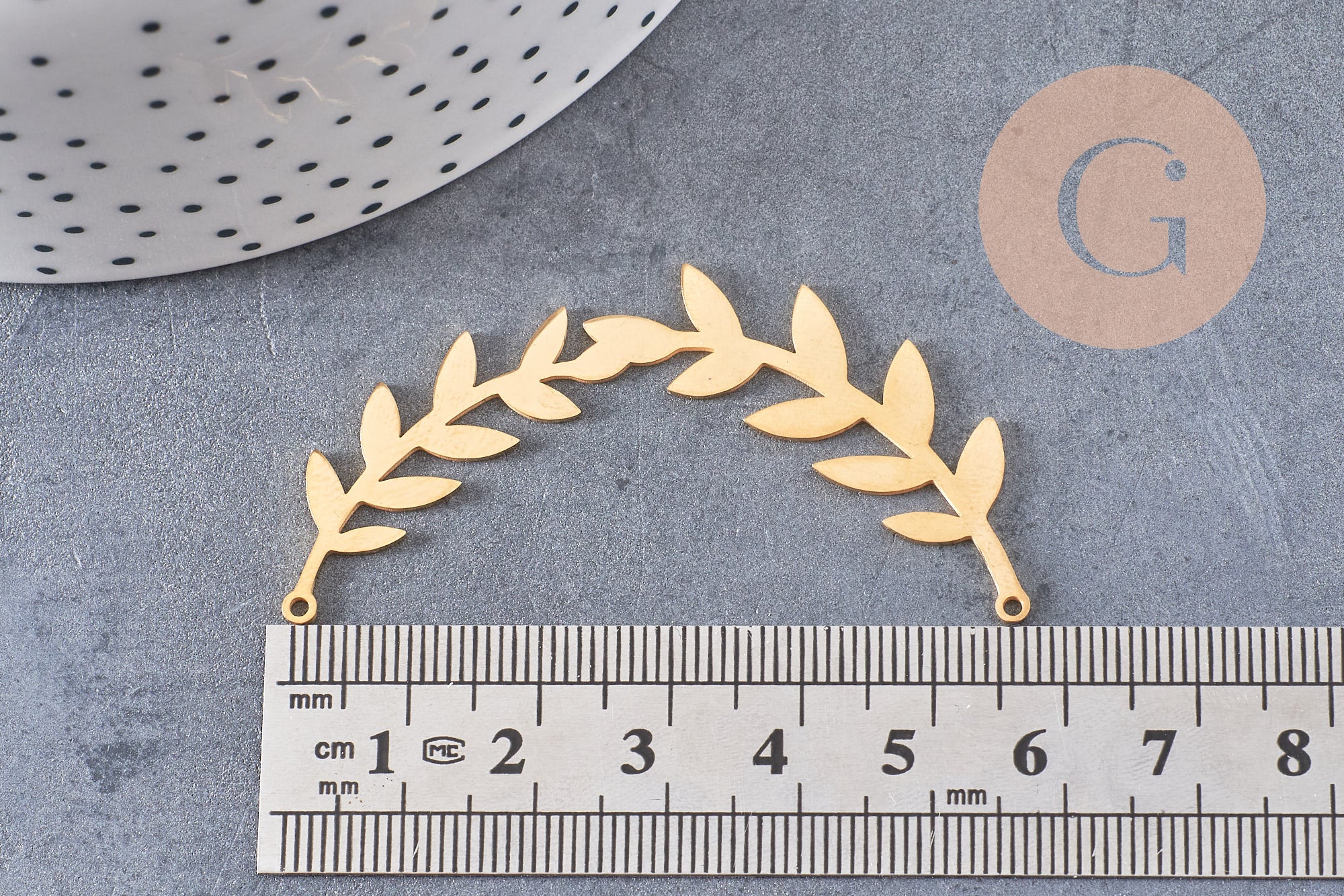 Gold-plated stainless steel laurel leaf connector pendant, a hypoallergenic steel jewel without nickel release, 59mm each