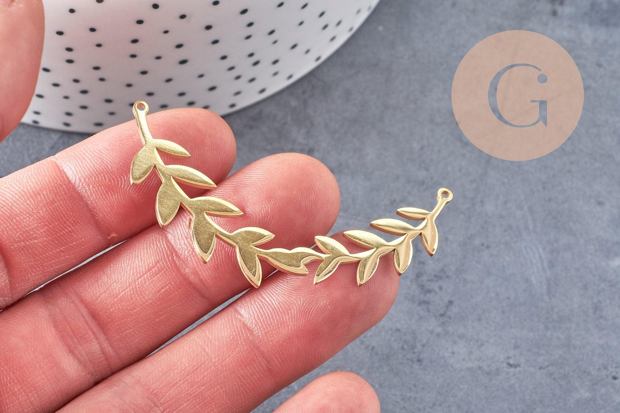 A pretty bay leaf connector, to use with one of our gold-plated steel chains: https://www.etsy.com/fr/shop/GingerlilyFrance?ref=seller-platform-mcnav&search_query=chaine+compl%C3%A8te+acier