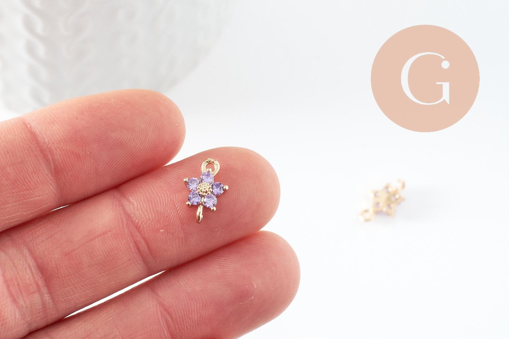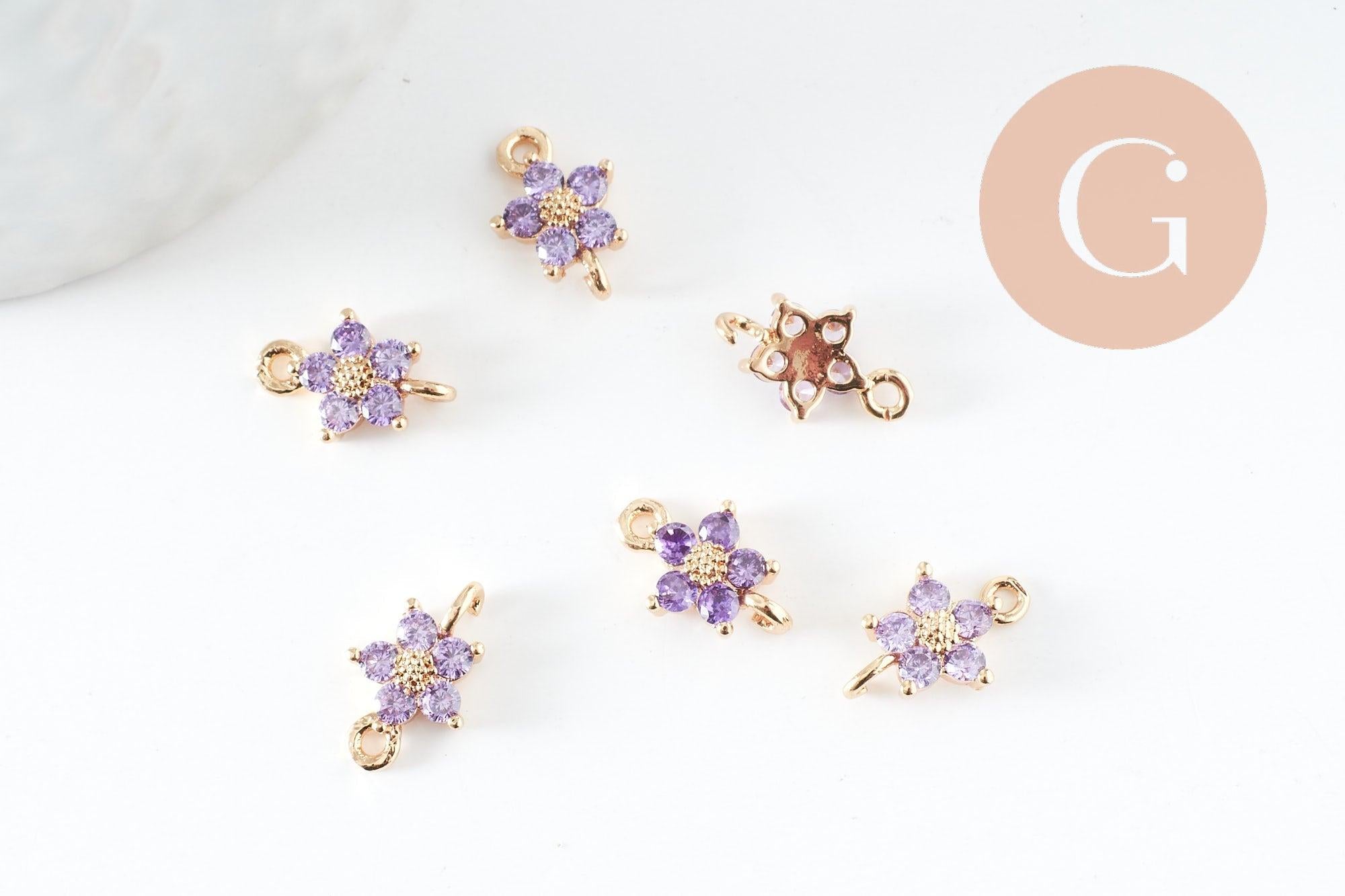 24 carat purple zircon gold flower connector pendant, gold crystal pendant, jewelry creation, 12.5mm, each