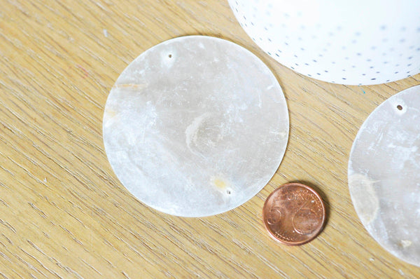 White mother-of-pearl round connector pendant 2 holes, natural white shell pendant, jewelry creation, 65mm, x 5 G3770