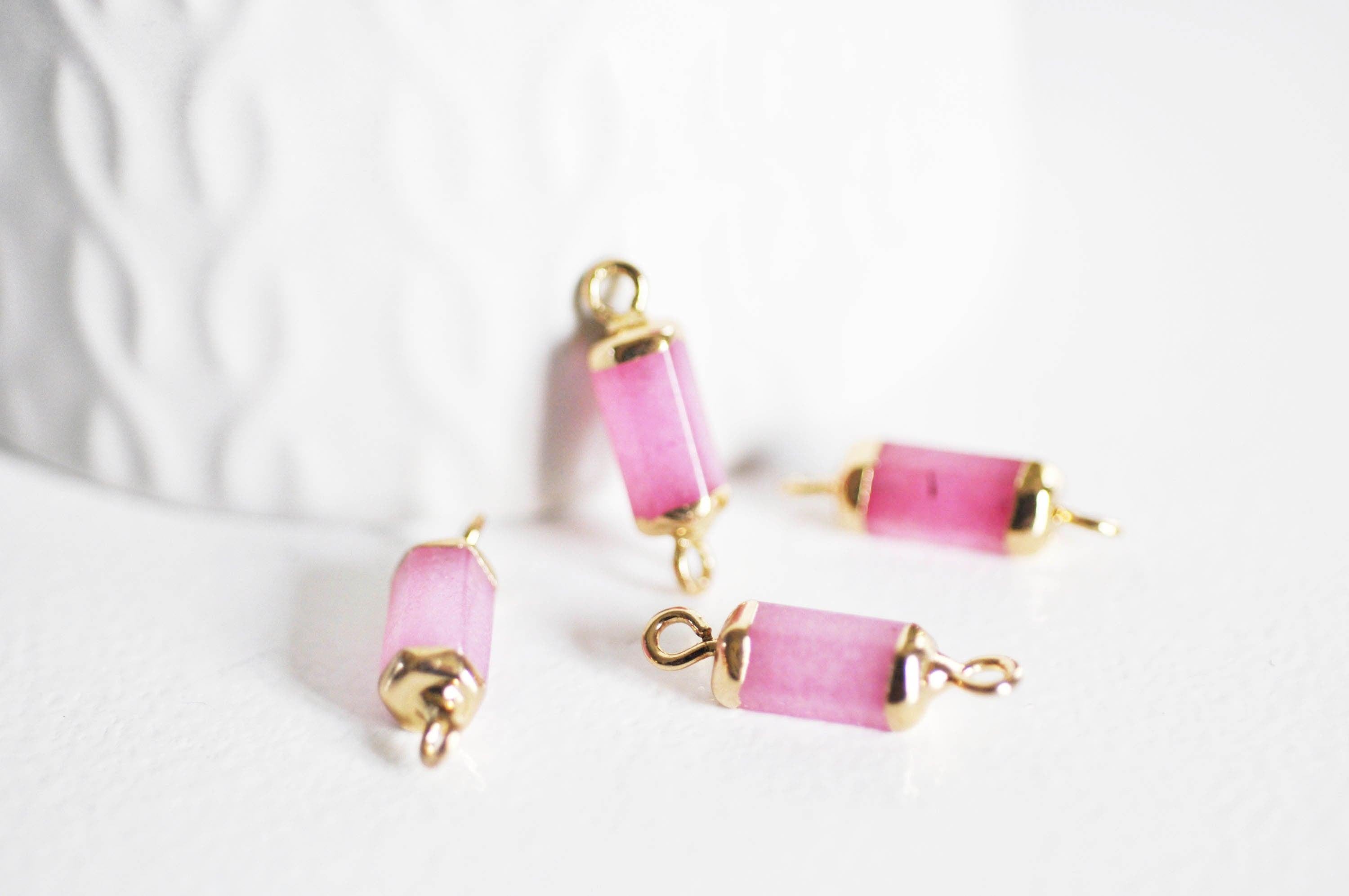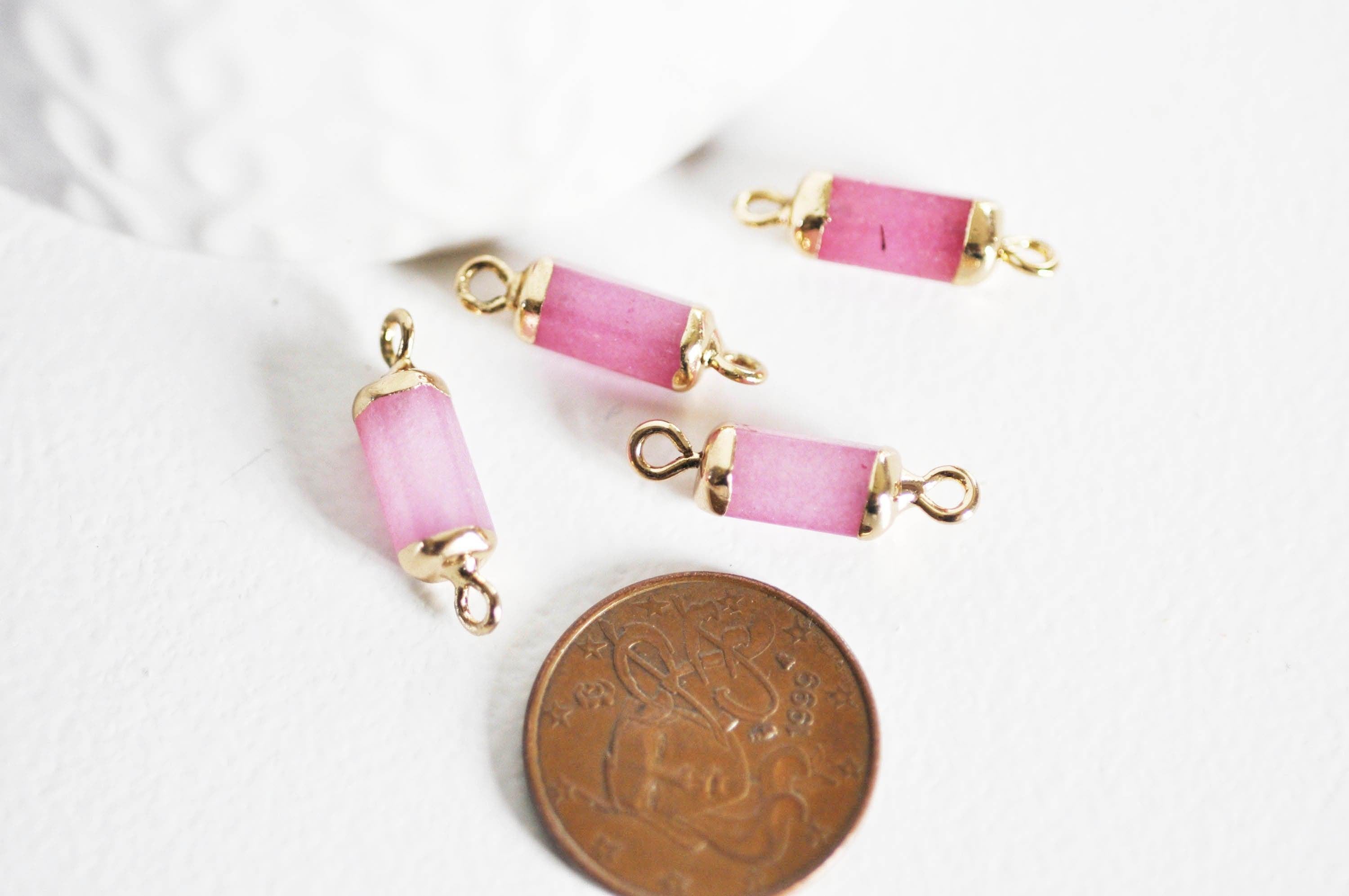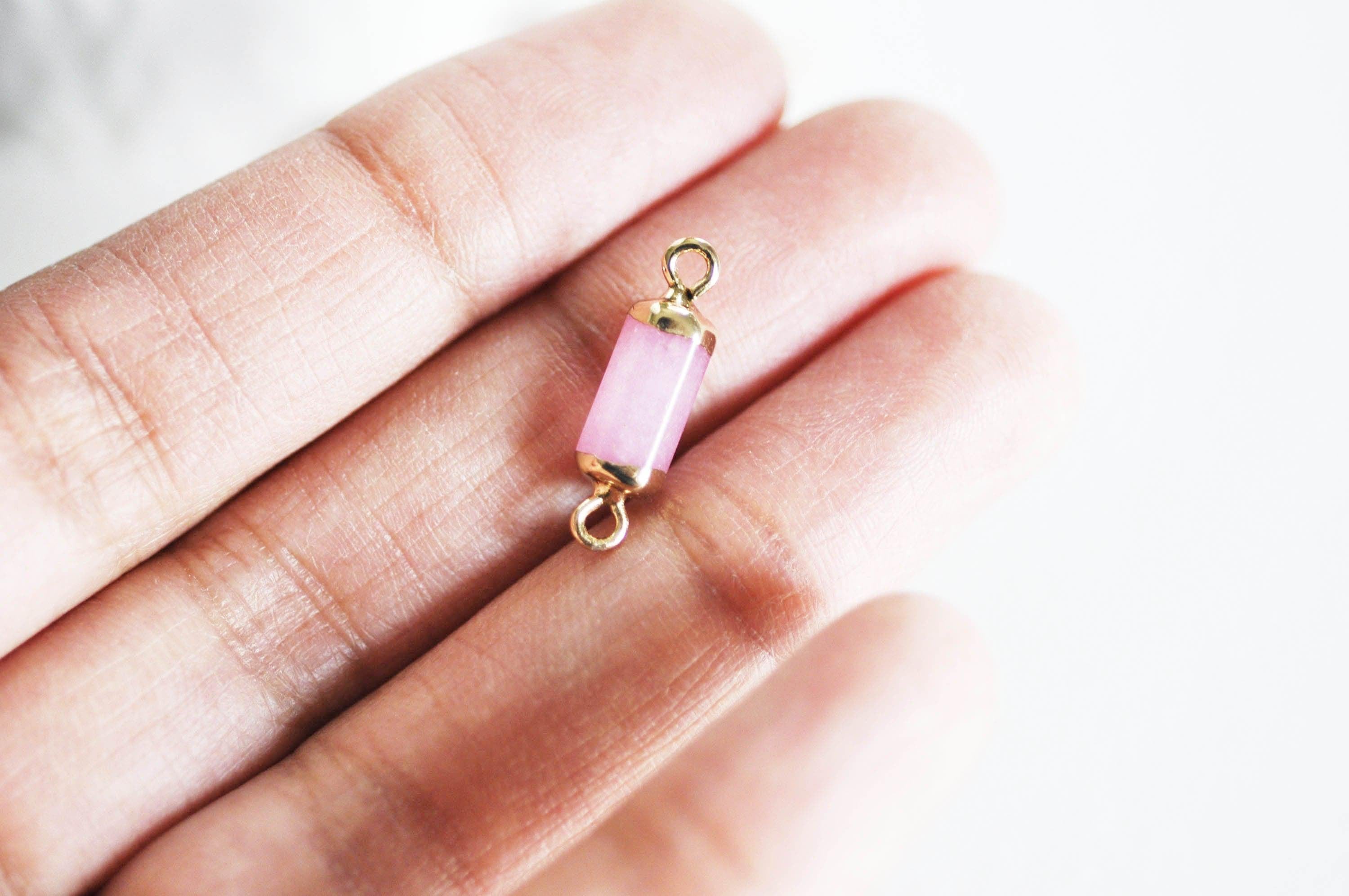 Gold rose jade tube connector pendant, creative supplies, jewelry pendant, pink jasper tube, stone pendant, natural pink jasper, 20mm