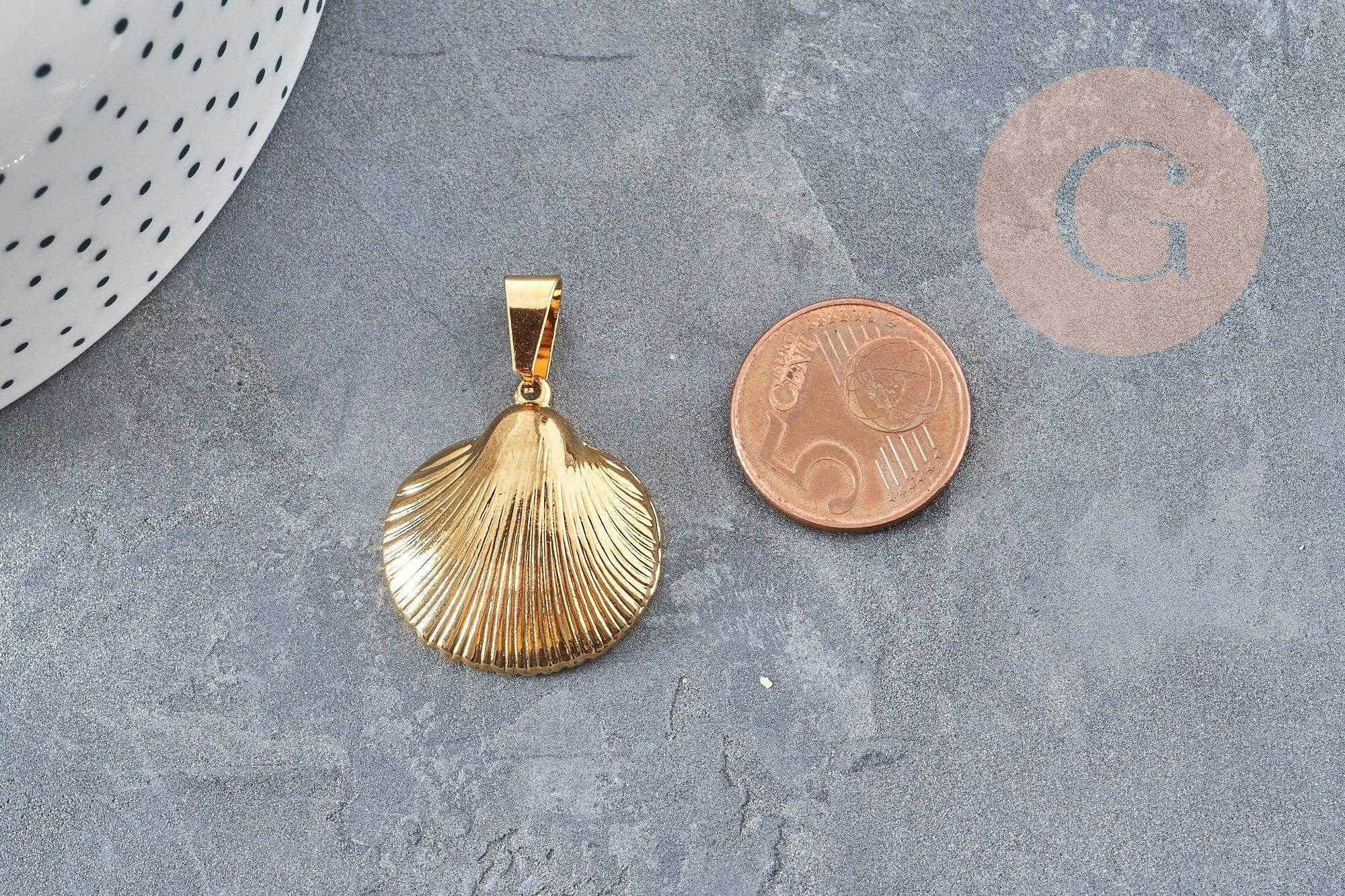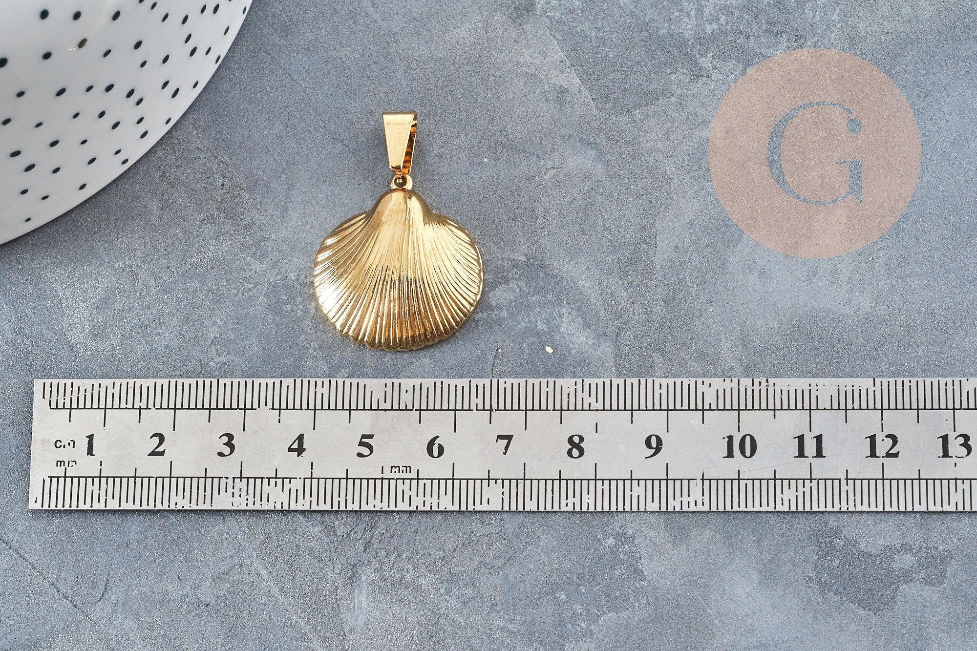 With its golden finish and authentic seashell design, this 304 gold-plated stainless steel pendant is the perfect canvas to express your passion for the sea through the creation of unique jewelry. Its hypoallergenic material allows you to wear your creations with confidence and comfort. Let your imagination run wild and create jewelry that recalls the very essence of the coast and the ocean.