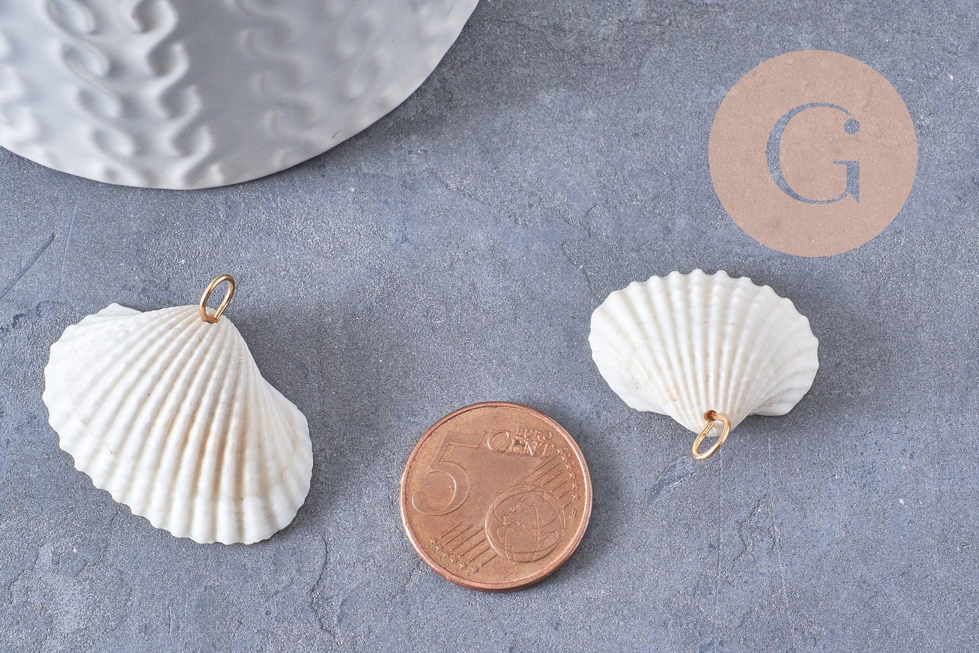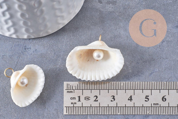 Bring a seaside and refined touch to your creations with this white shell pendant decorated with imitation pearls and an elegant gold zamac support.