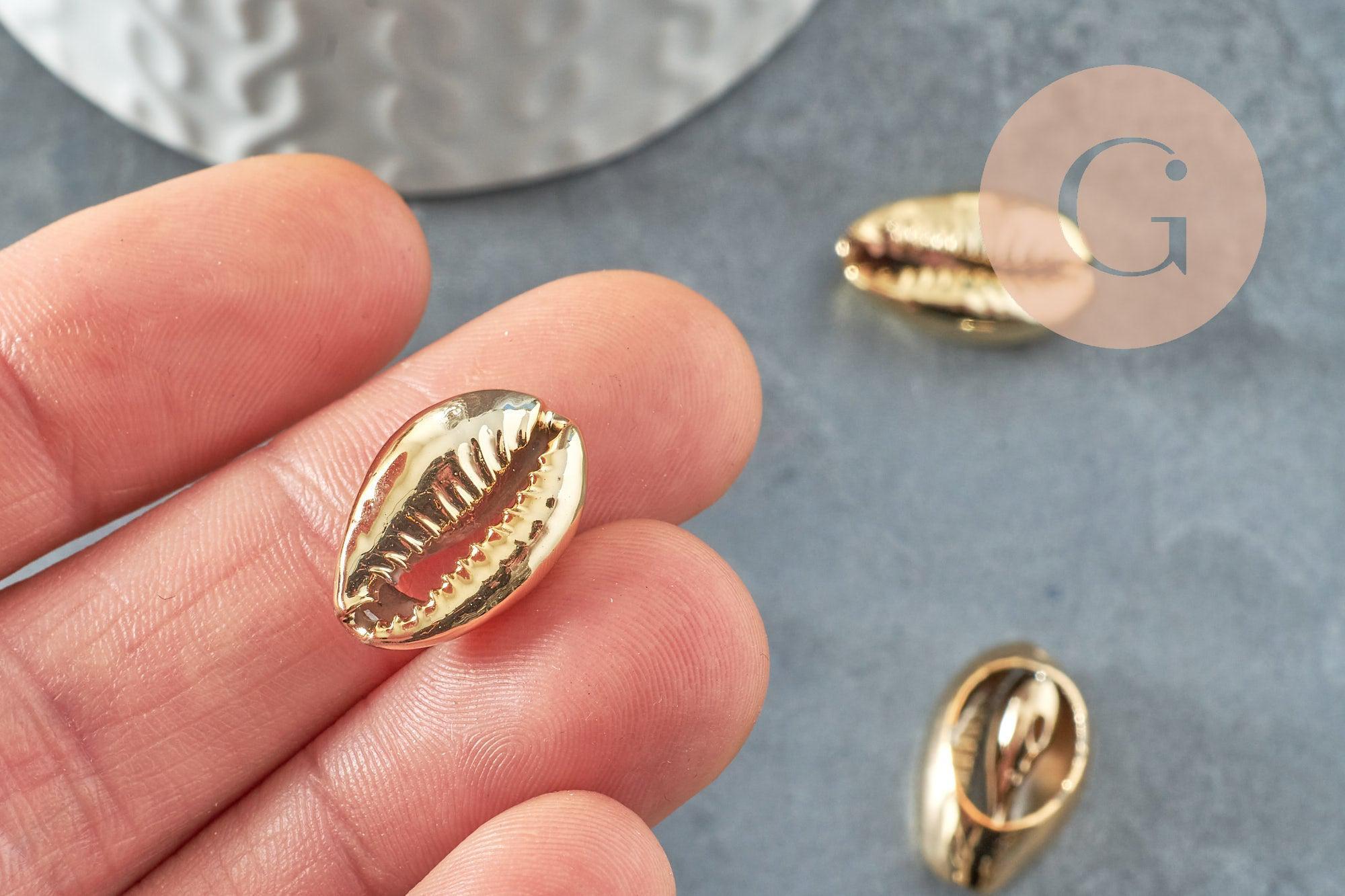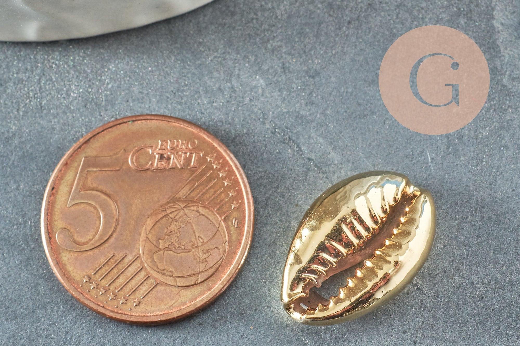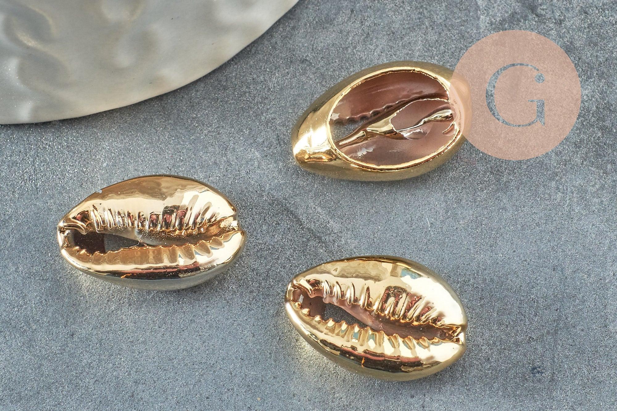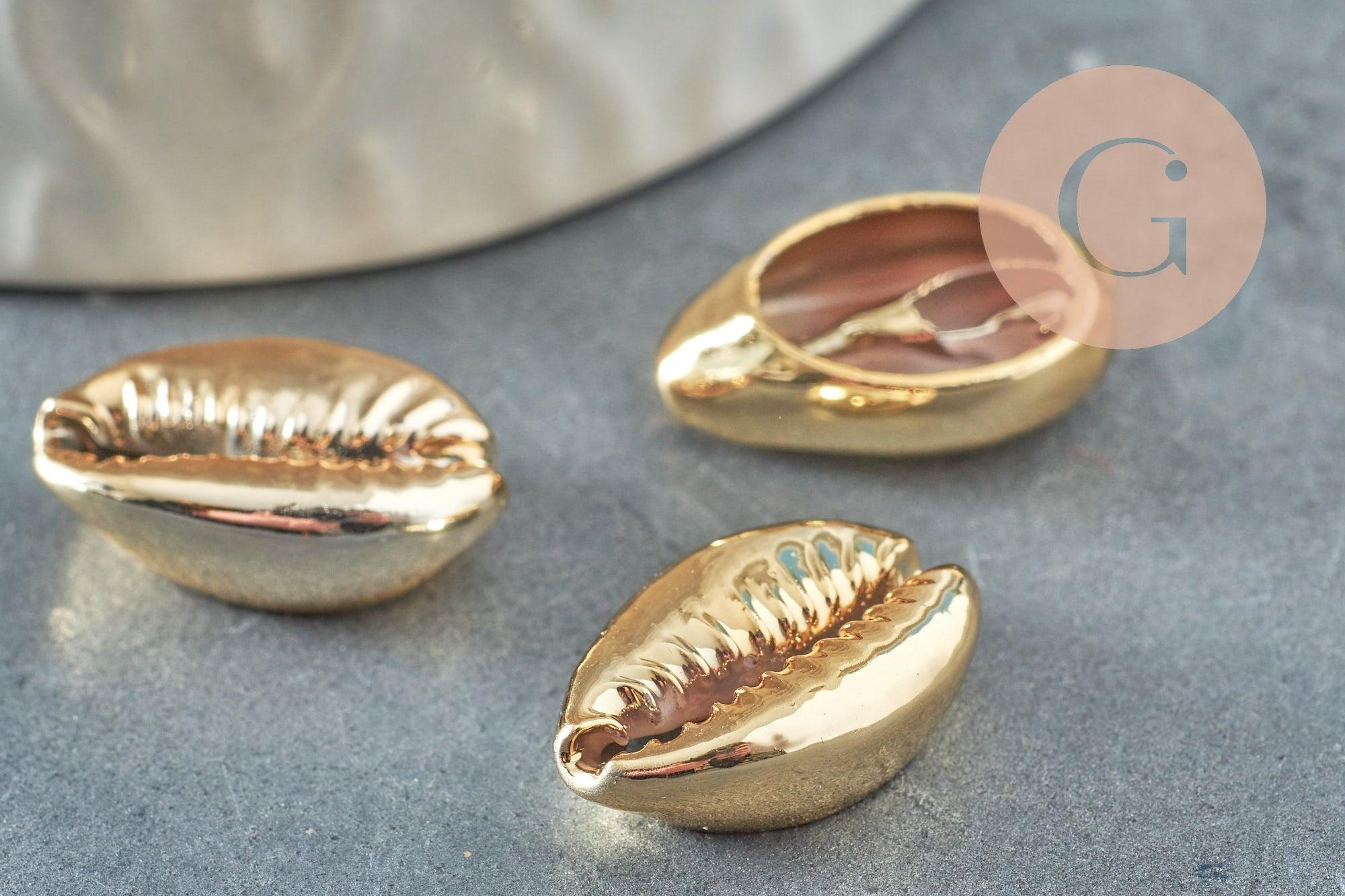 Pendentif coquillage cauri naturel doré clair20mm, x5 (G1121)