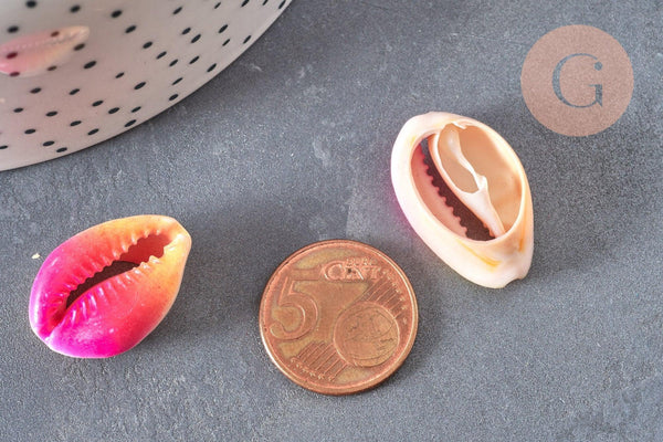 Pink cowrie shell pendant, creative supply, natural shell, pink cowrie, jewelry creation, shell jewel, shell, 20-26mm, SET OF 5