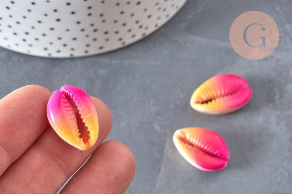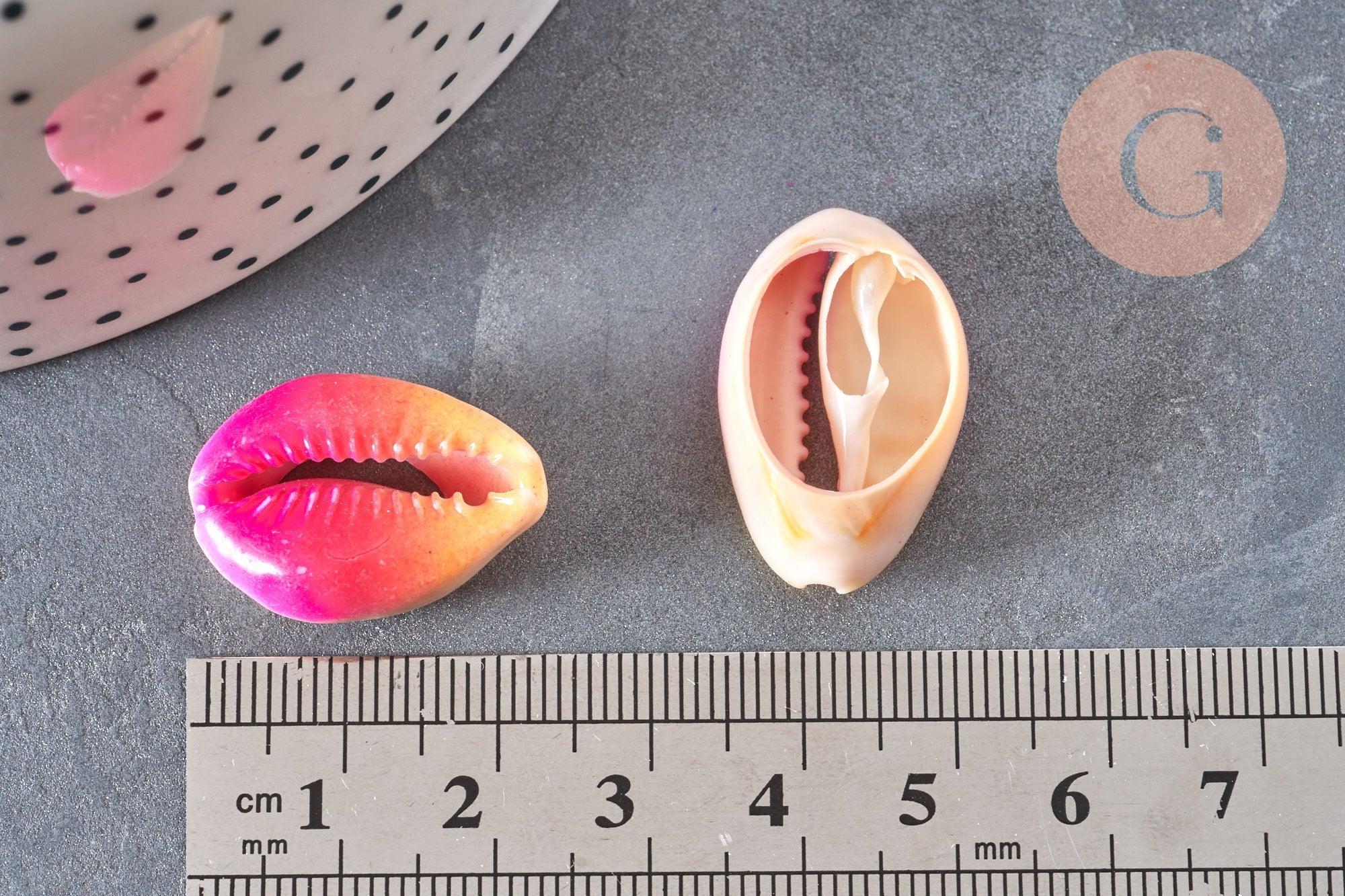 A set of 5 natural cowries dyed pink and yellow to make an elegant natural shell pendant.