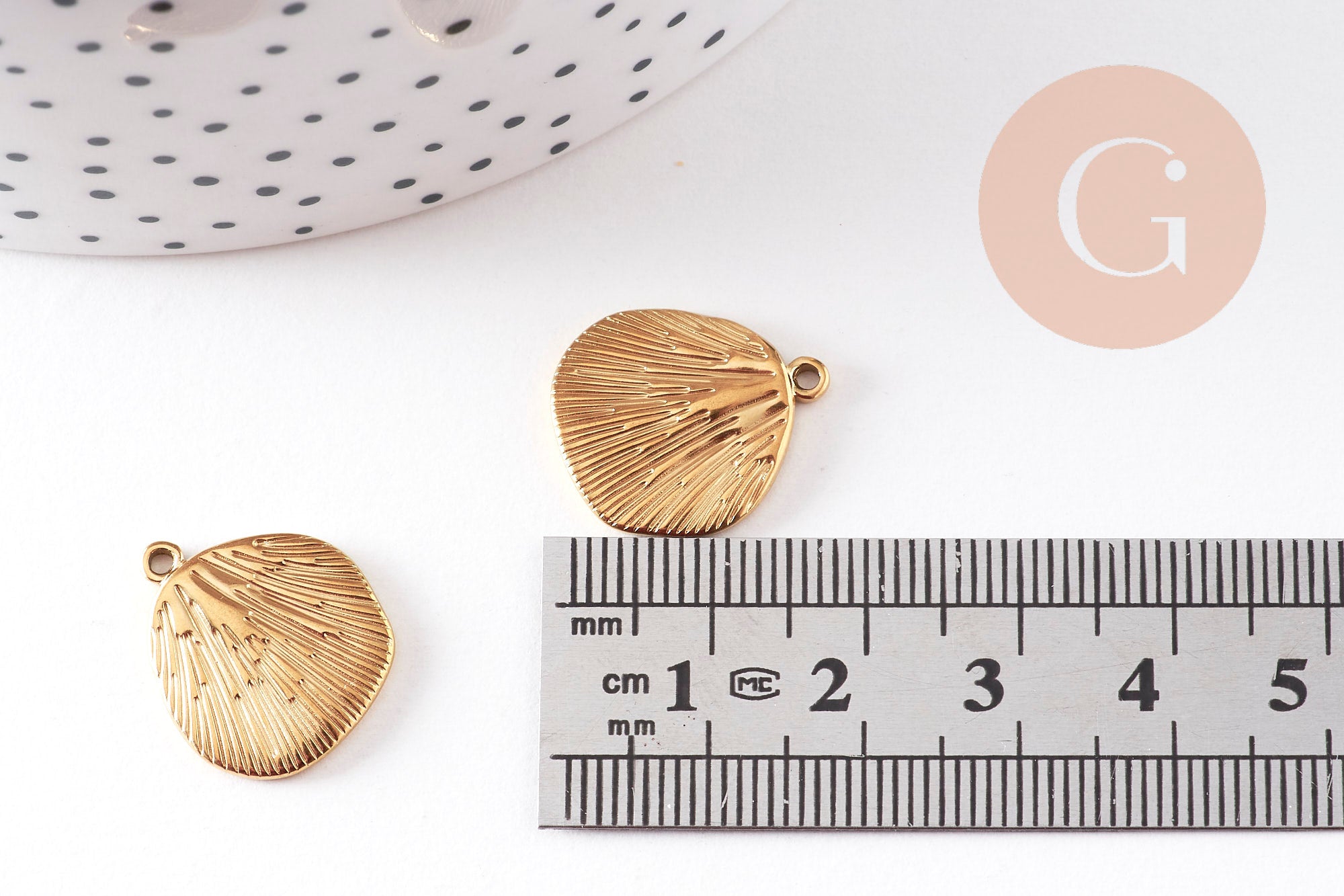 Pendentif coquillage feuille acier 304 doré inoxydable 18mm, x1 (G11005)