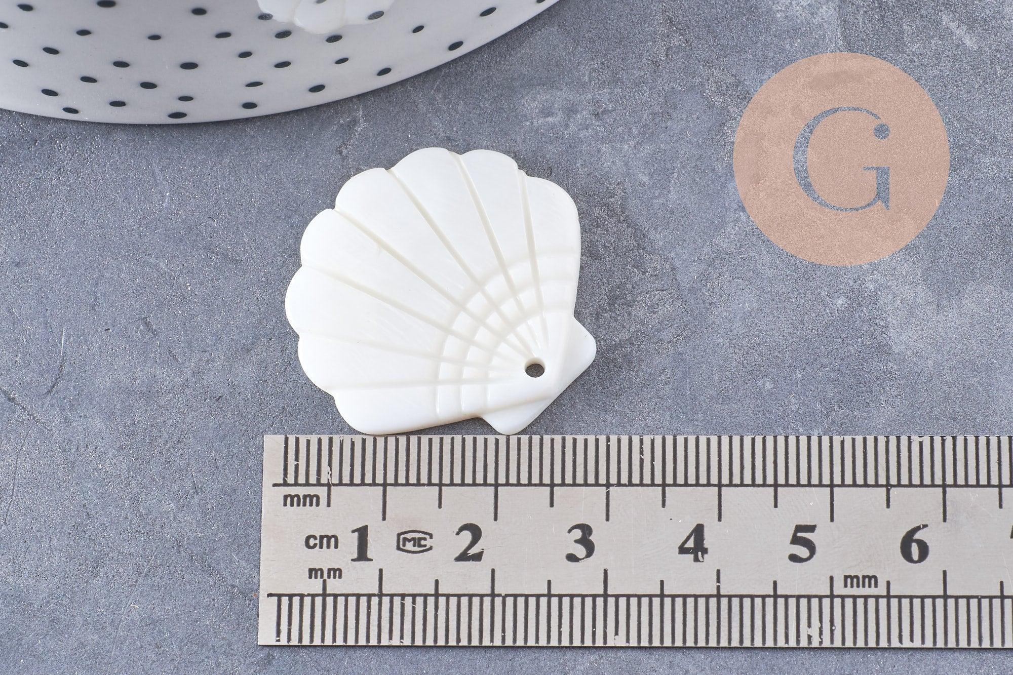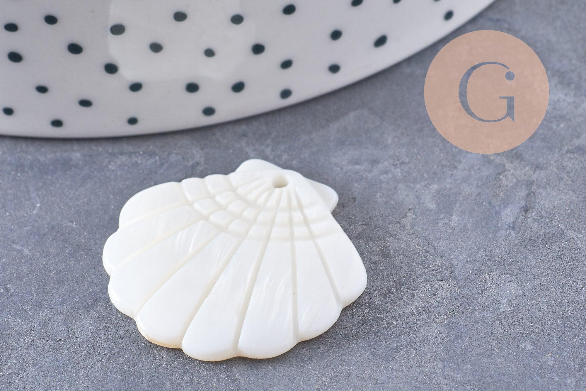 Pendentif coquillage nacre blanche naturelle 29mm, x2 (G10089)